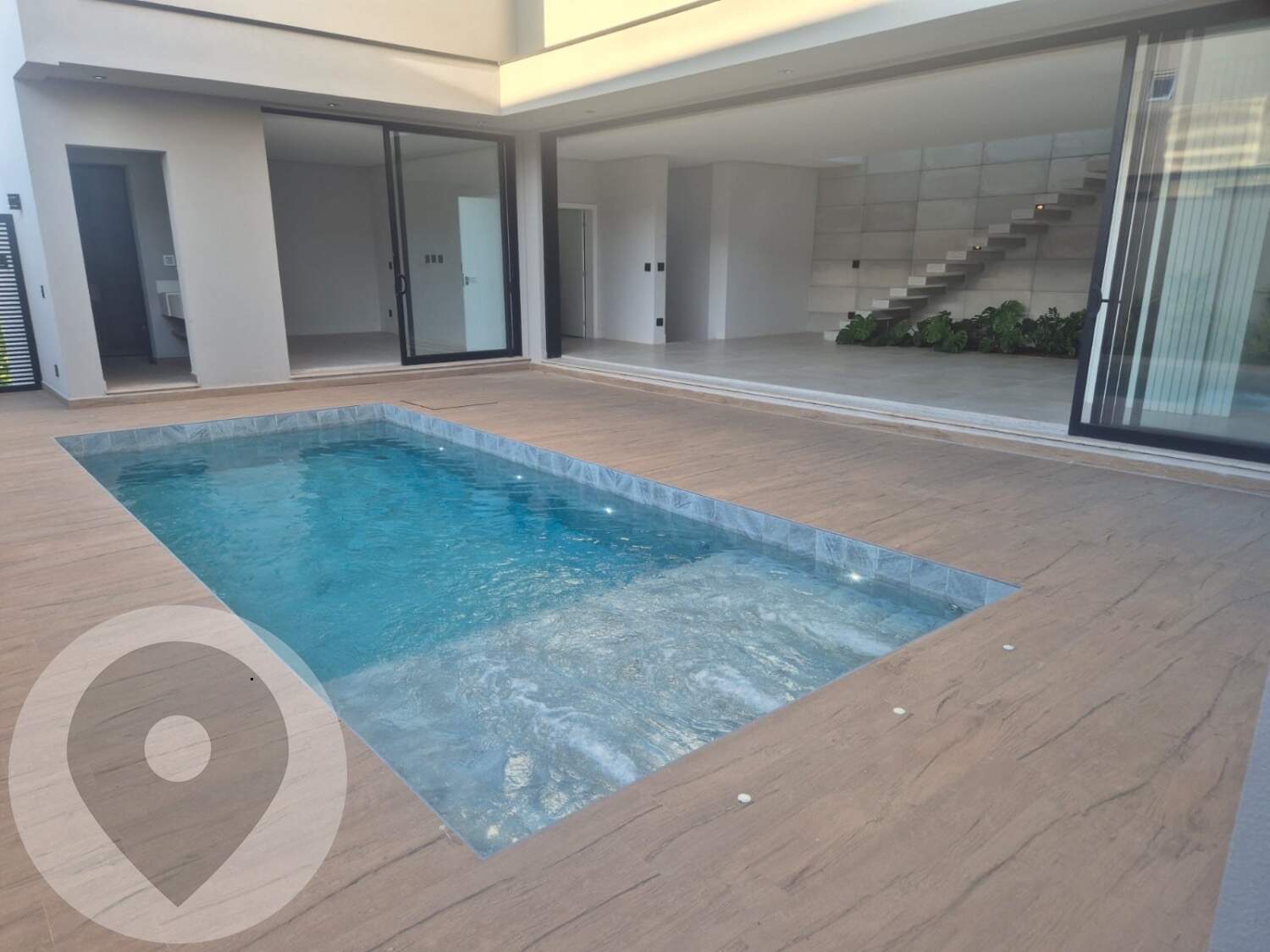 Piscina com iluminação, estrutura para aquecimento e motores instalados;