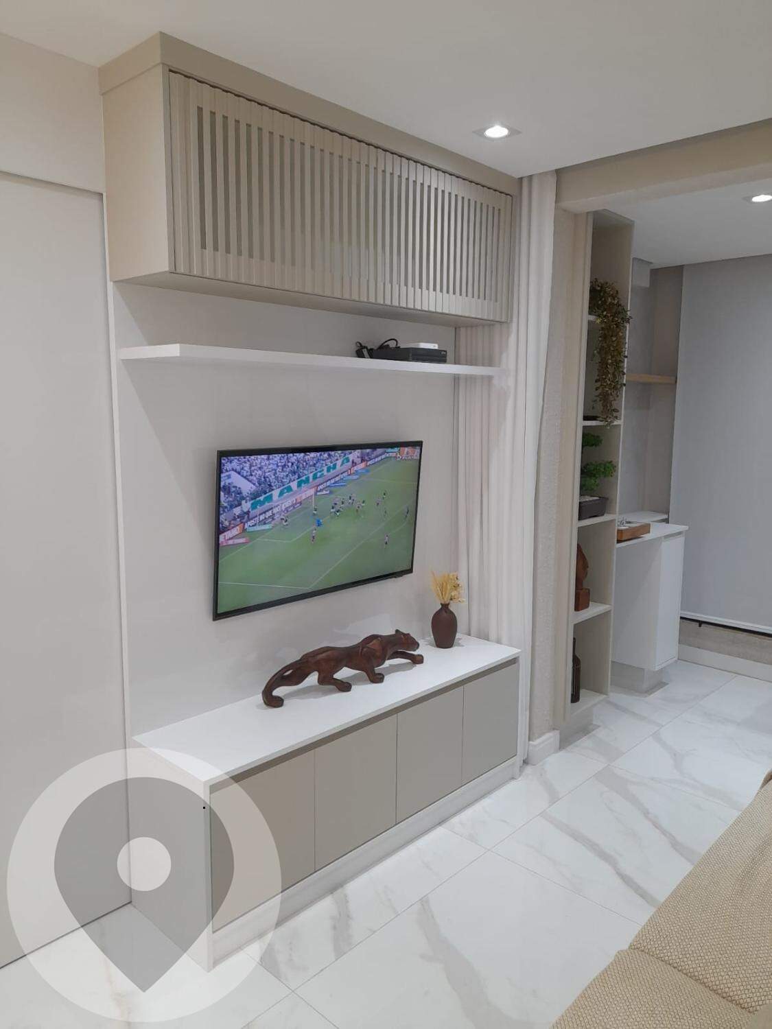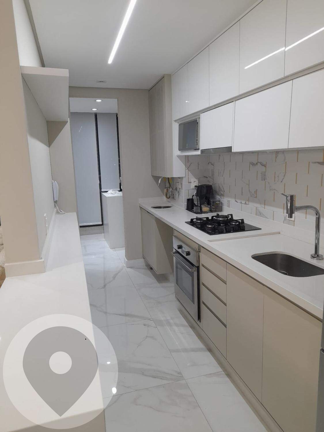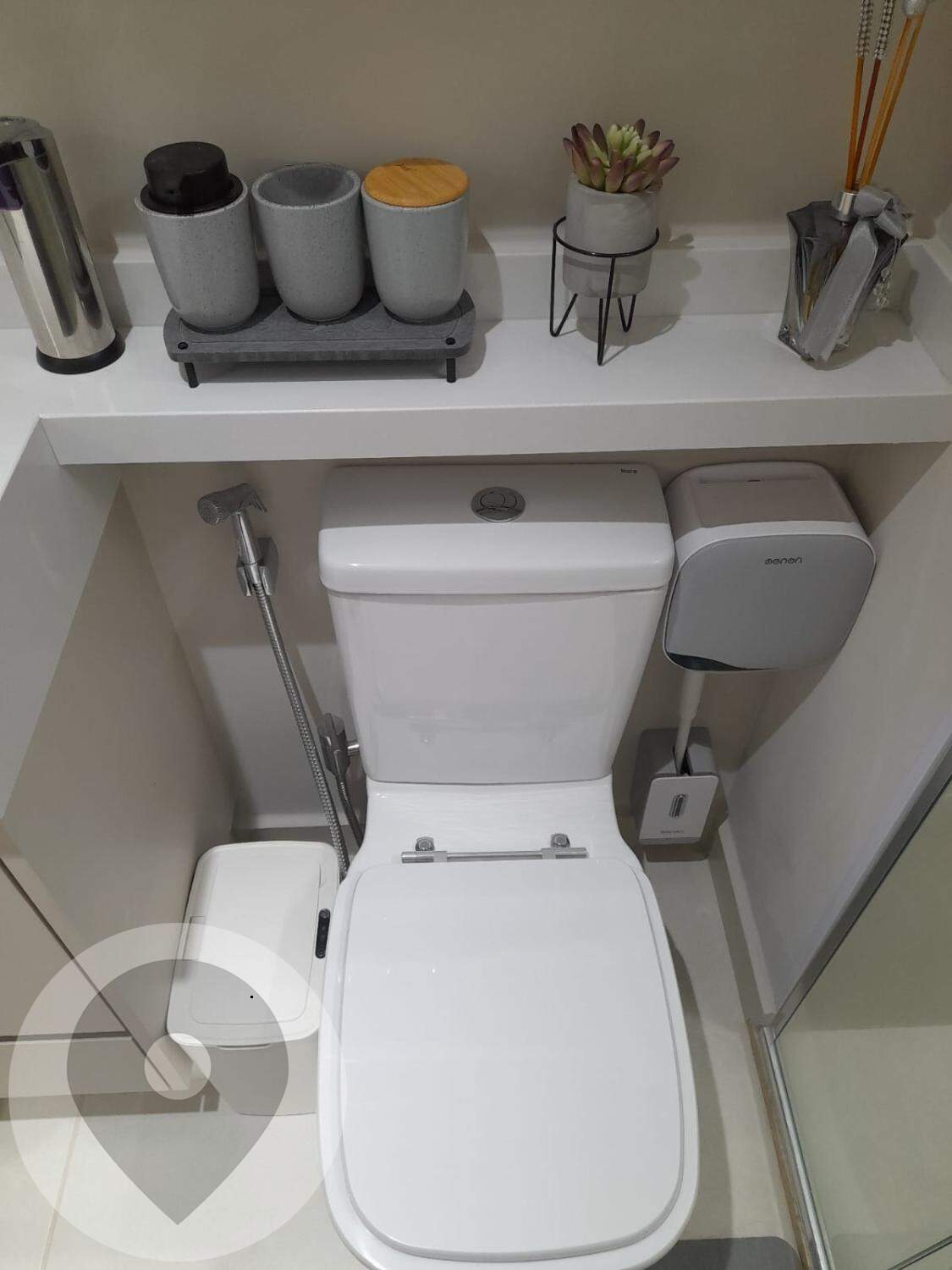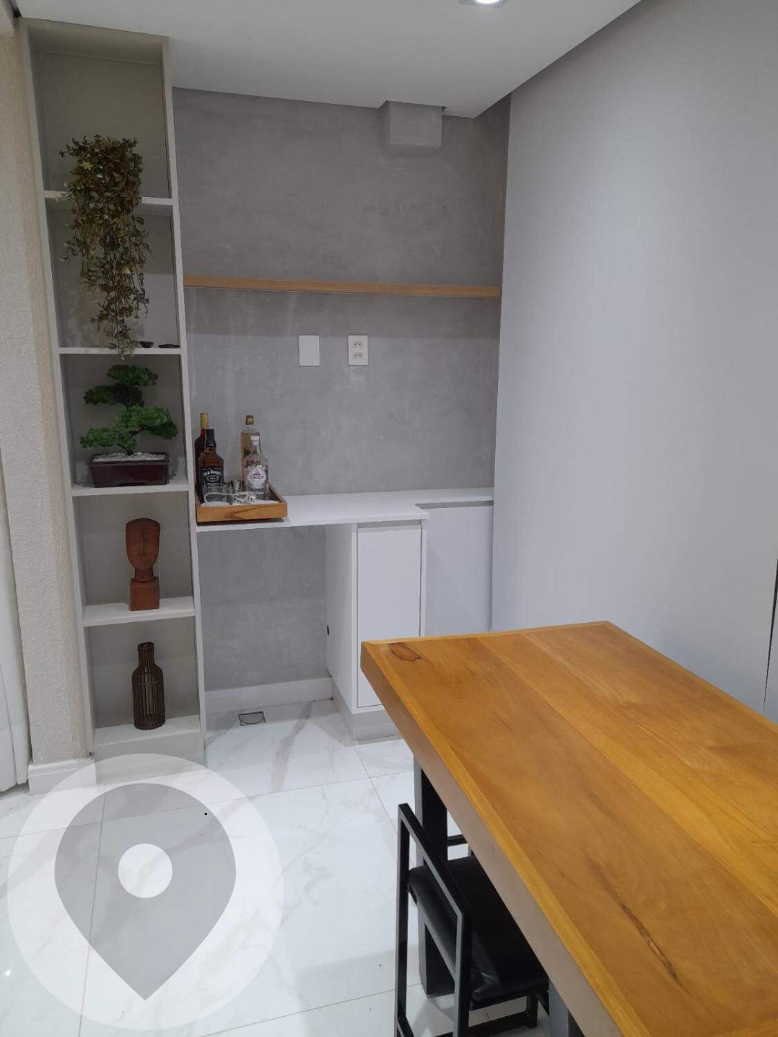 A presença de dois quartos, sendo um suíte, e armários planejados em todos os cômodos garante praticidade e organização aos moradores. A cozinha super planejada, com cooktop, forno e geladeira, oferece um ambiente funcional e moderno para preparar refeições.