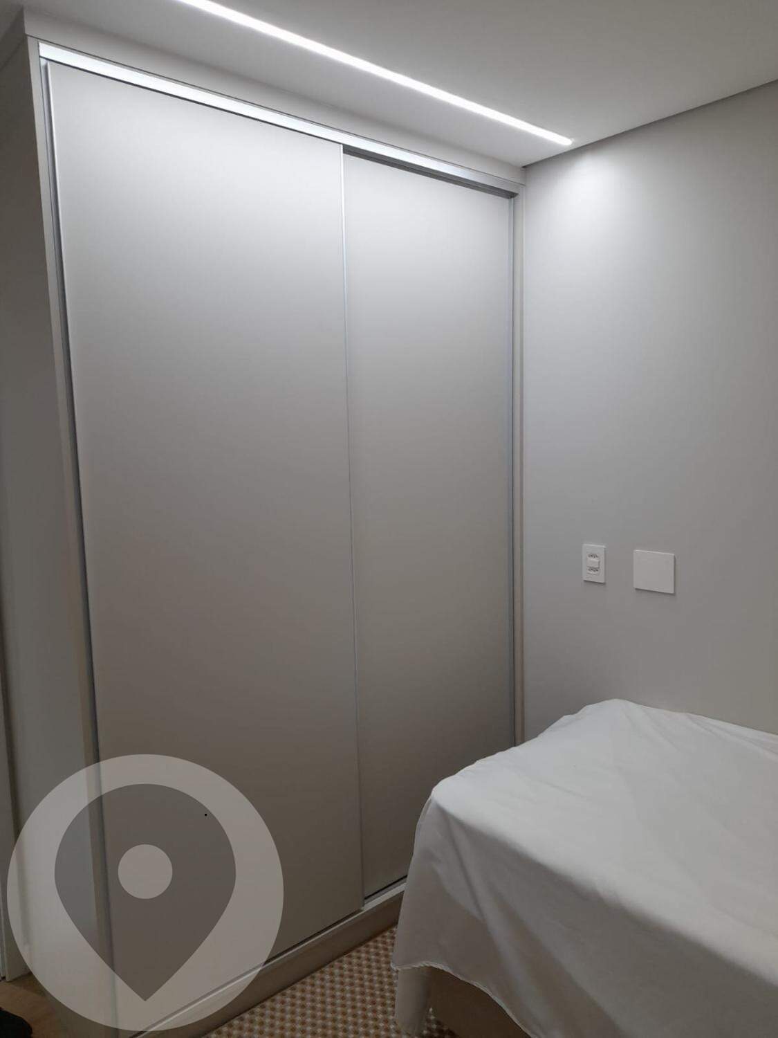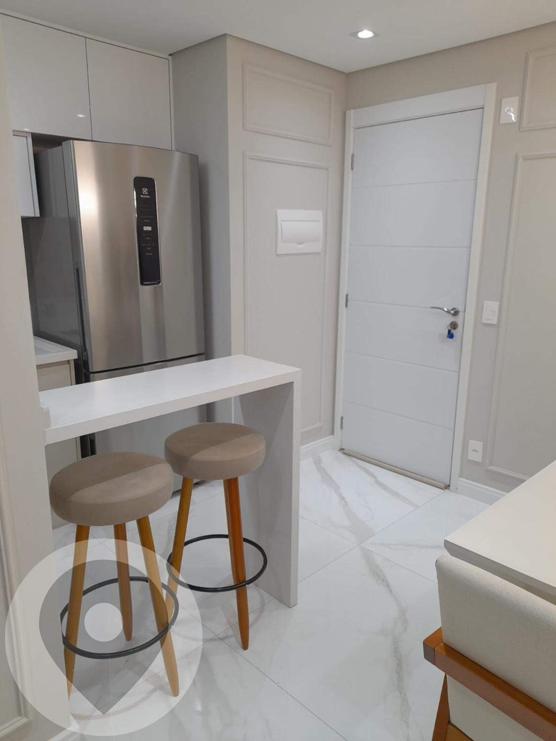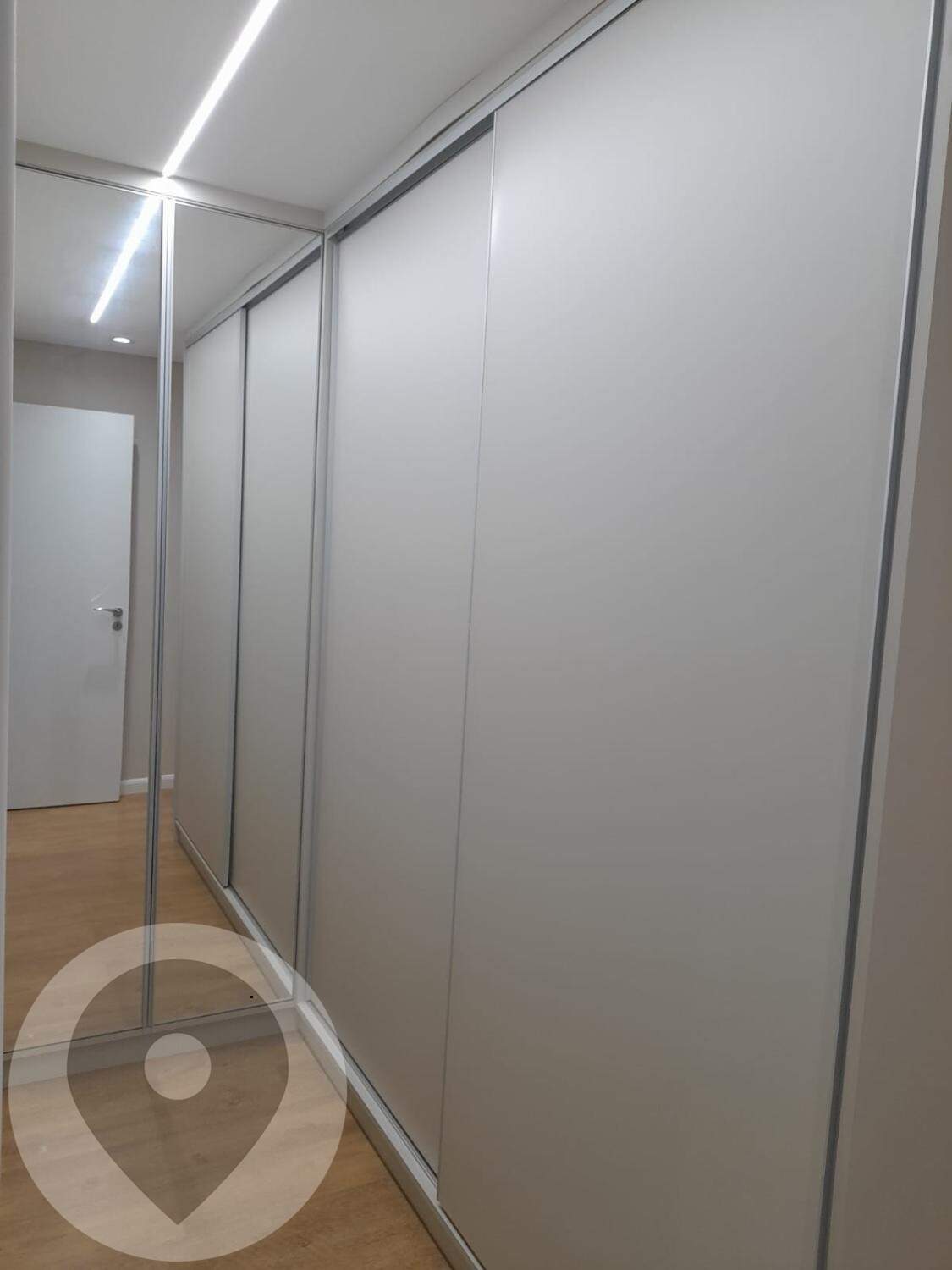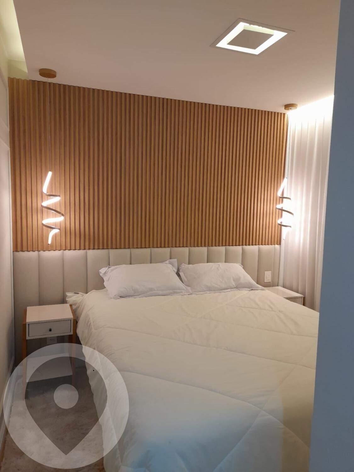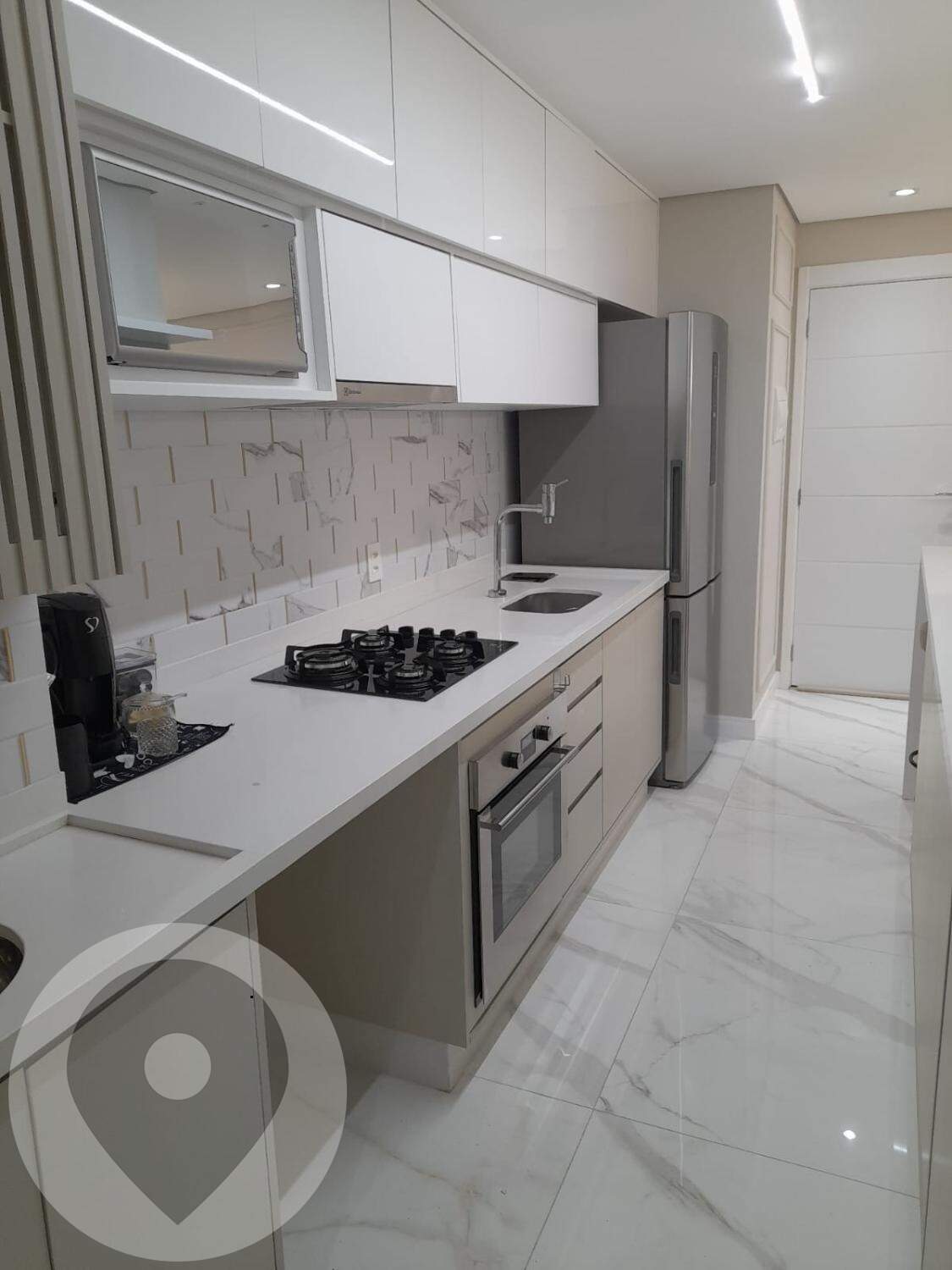 A presença de dois quartos, sendo um suíte, e armários planejados em todos os cômodos garante praticidade e organização aos moradores. A cozinha super planejada, com cooktop, forno e geladeira, oferece um ambiente funcional e moderno para preparar refeições.