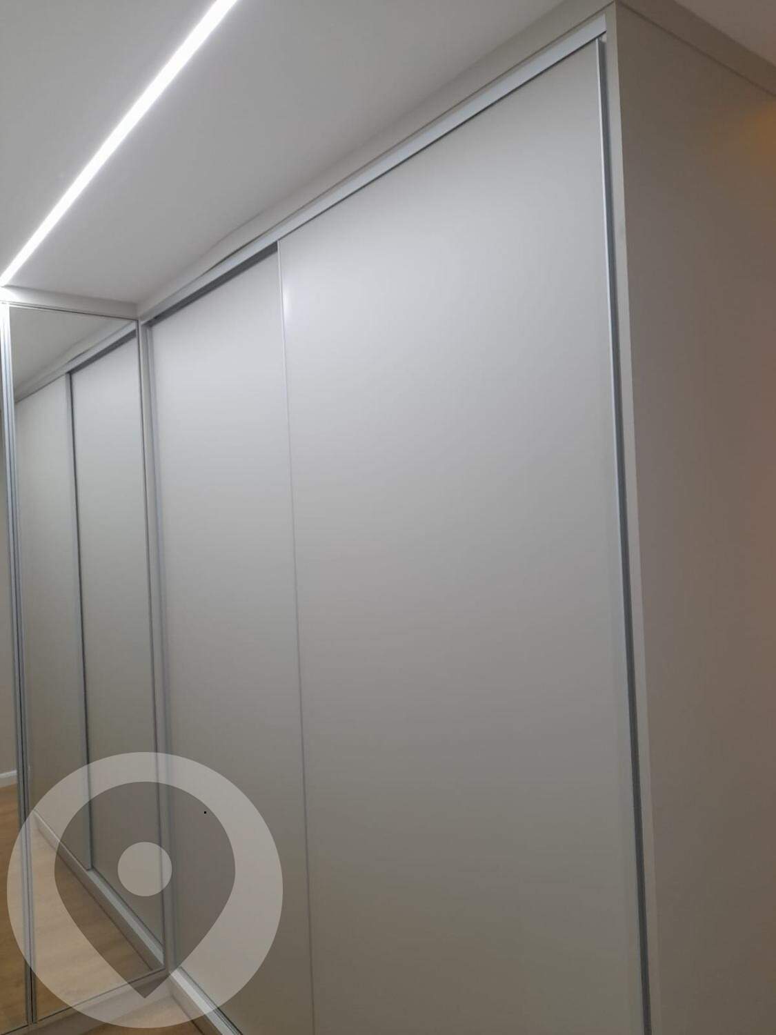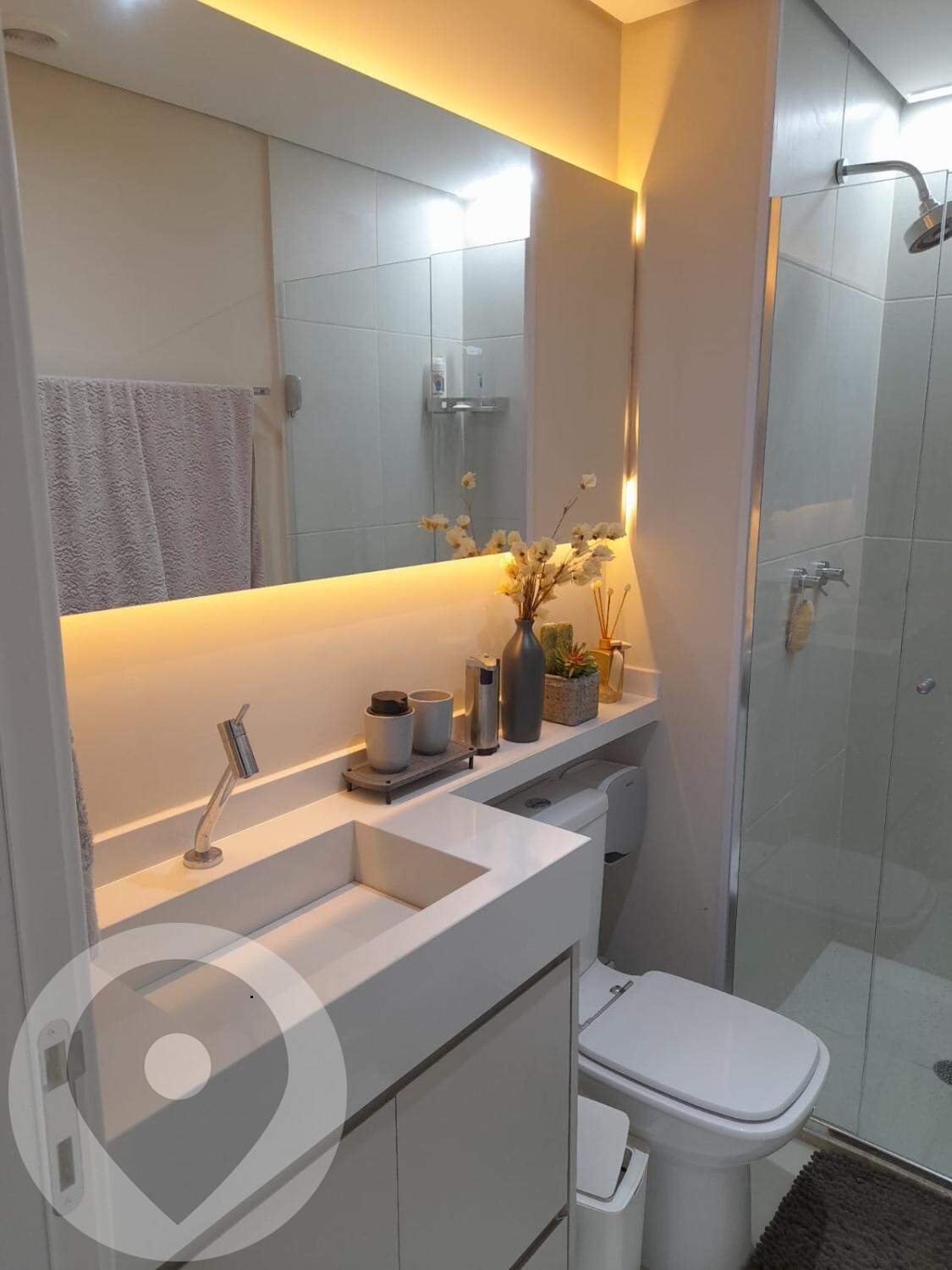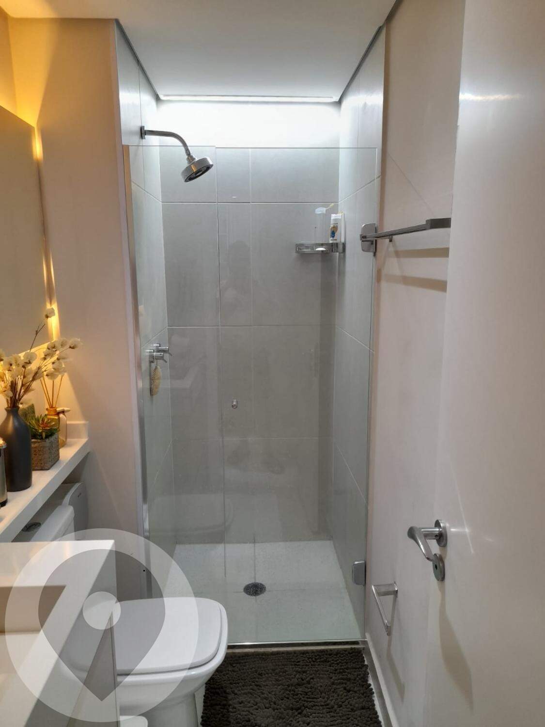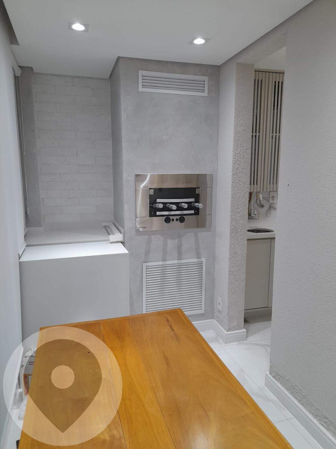 A presença de dois quartos, sendo um suíte, e armários planejados em todos os cômodos garante praticidade e organização aos moradores. A cozinha super planejada, com cooktop, forno e geladeira, oferece um ambiente funcional e moderno para preparar refeições.