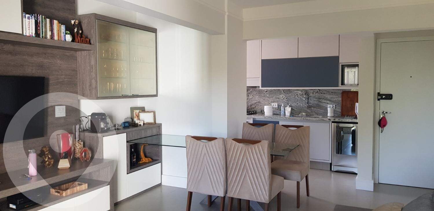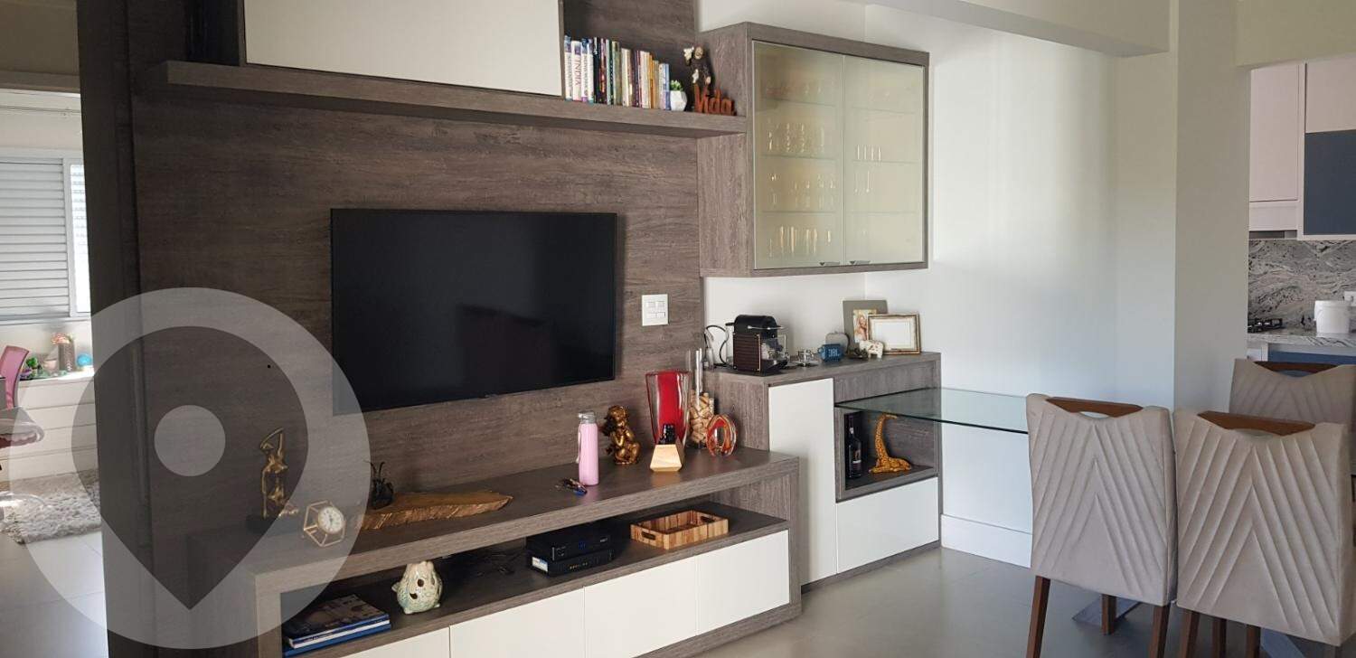 Imóvel composto de 2 dormitórios, sendo 1 suíte, sala para dois ambientes integrada a cozinha, varanda, rico em armários em todos os ambientes e ar-condicionado.