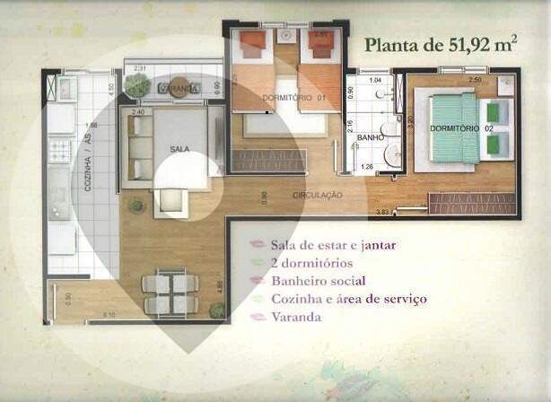 Bem localizado , esse lindo imóvel conta com cozinha planejada , sala para 2 ambientes com sacada , 2 dormitórios com armários , banheiro social , área de serviço e 1 vaga de garagem coberta no subsolo . A área de lazer é fantástica , com salão de festas para 40 pessoas , 04 churrasqueiras , 02 playgrounds , 01 academia muito bem equipada , 01 Salão de Jogos com mesa de bilhar, dardos e frigobar , 01 Briquedoteca , 01 Espaço Zen e
