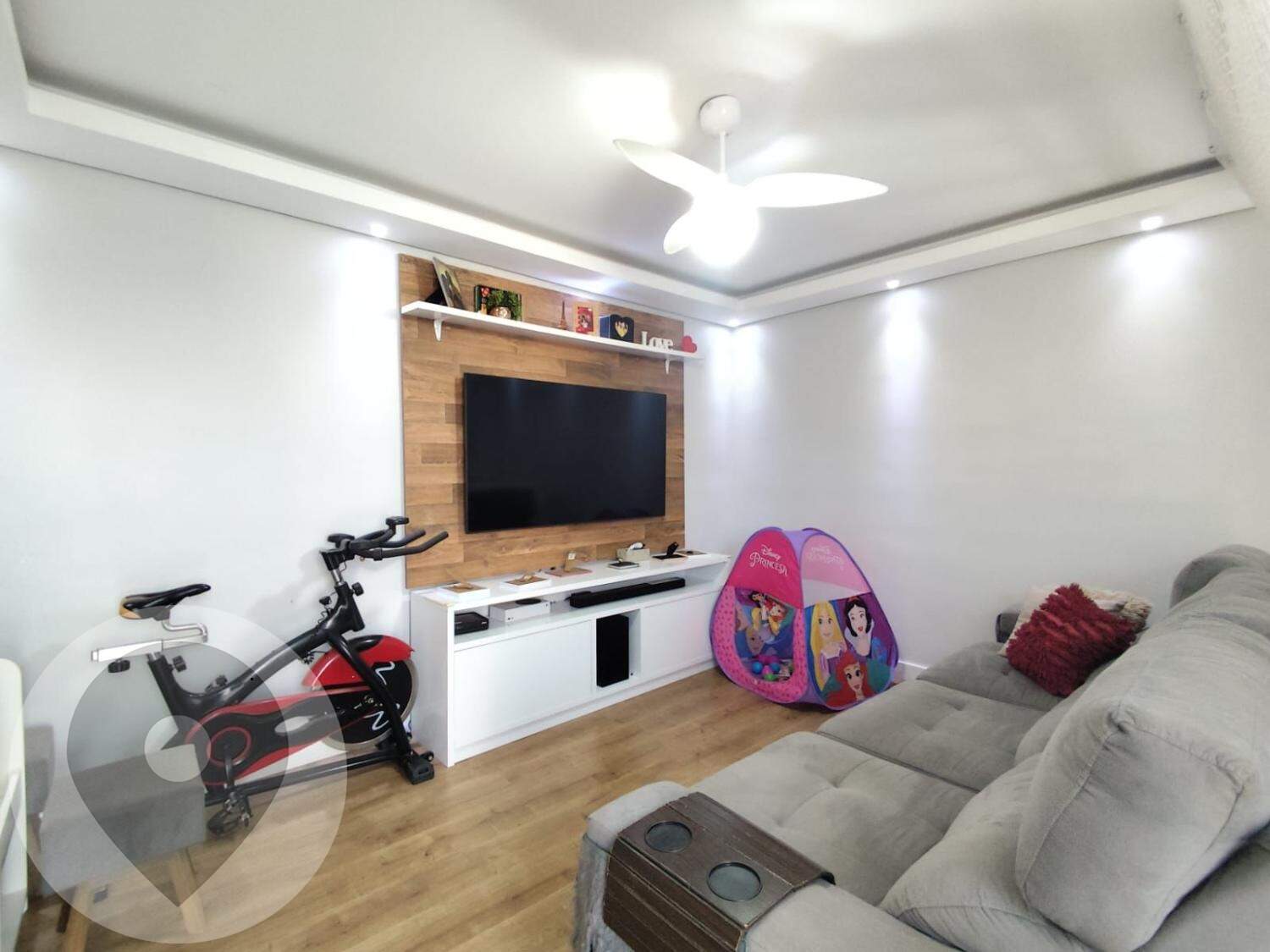 -Living para 2 Ambientes com teto rebaixado e iluminação em spots, proporcionando um ambiente moderno e acolhedor.