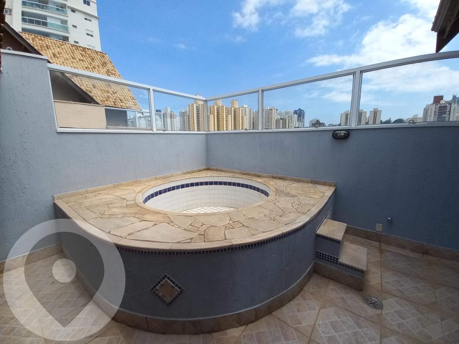 Piso Intermediário com 1 suíte com armário planejado , espaço para sala e área gourmet com churrasqueira e ofurô .