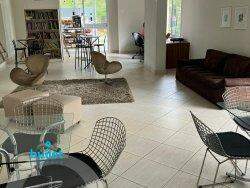 Living para três ambientes, lavabo, varanda gourmet com fechamento em vidro e persianas, três suítes (com armários em duas), roupeiro no corredor, cozinha planejada, área de serviço com armários,