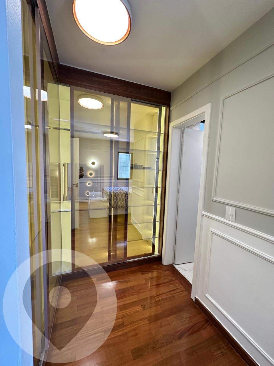 3 Suítes espaçosas, todas com armários planejados de portas de vidro com iluminação interna e puxadores rosê gold ? luxo e elegância em cada detalhe.