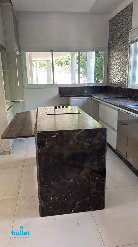 Cozinha com piso em porcelanato de primeira linha, com bancada e pia em mármore Classic Brown