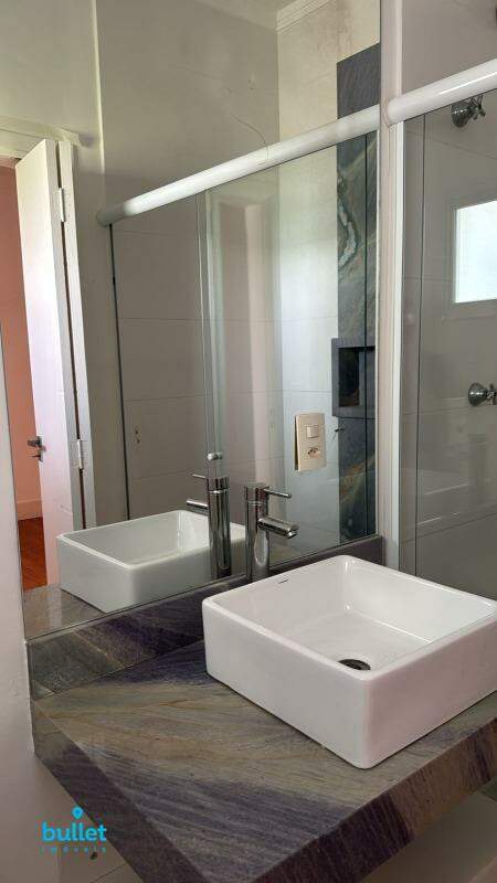 Mais uma suíte no piso da garagem, com duas entradas de acesso, sendo uma delas independente, pelo piso da garagem, e com acesso ao jardim, com banheiro com bancada e detalhes em mármore Blue sky!!!