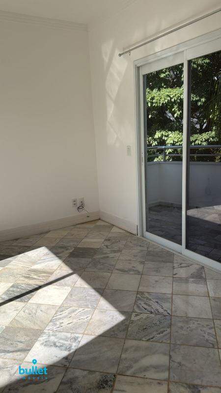 Sala de TV com piso em mármore, e sacada
