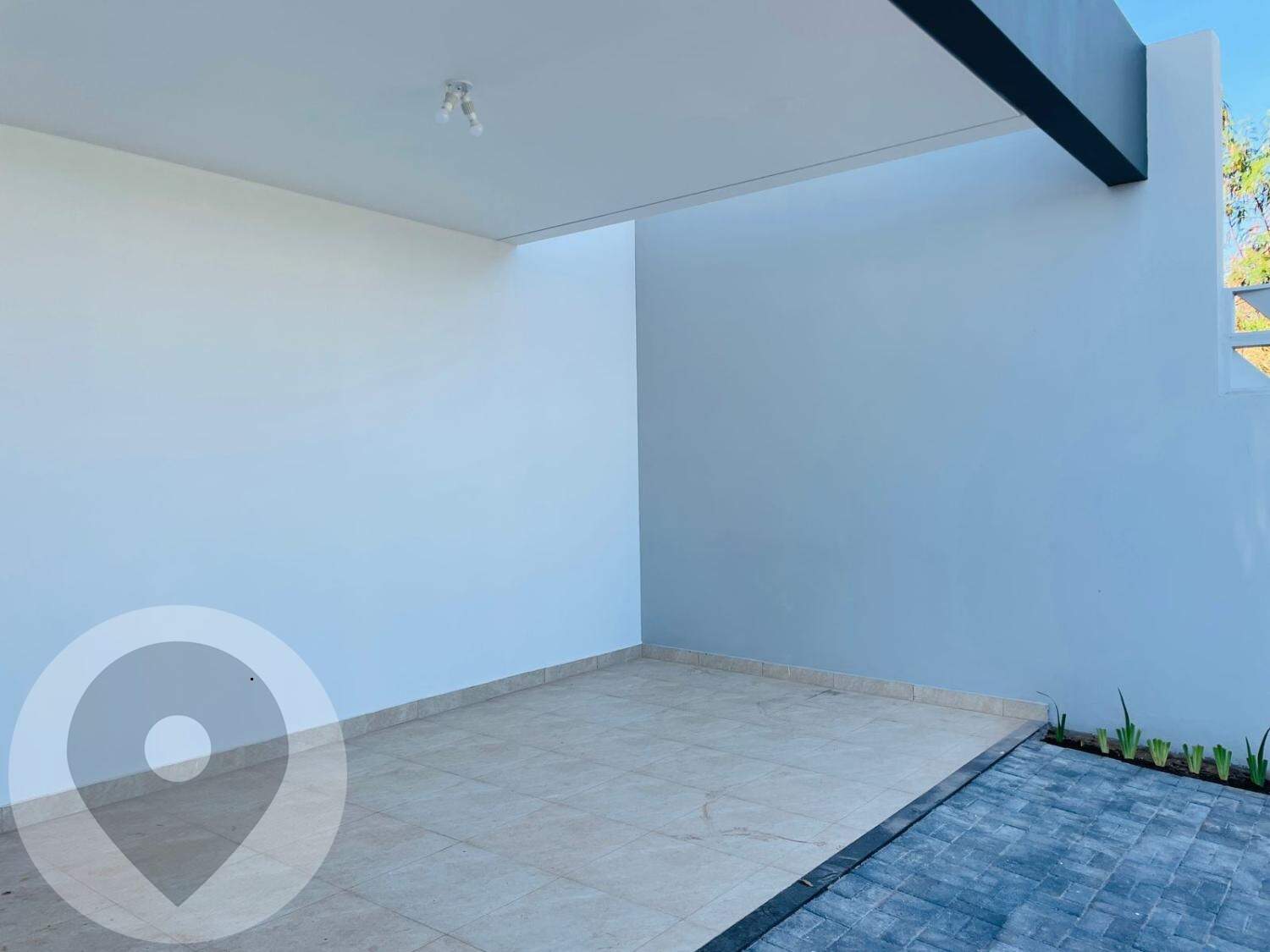 Garagem coberta para 2 carros, com acesso direto à residência.
