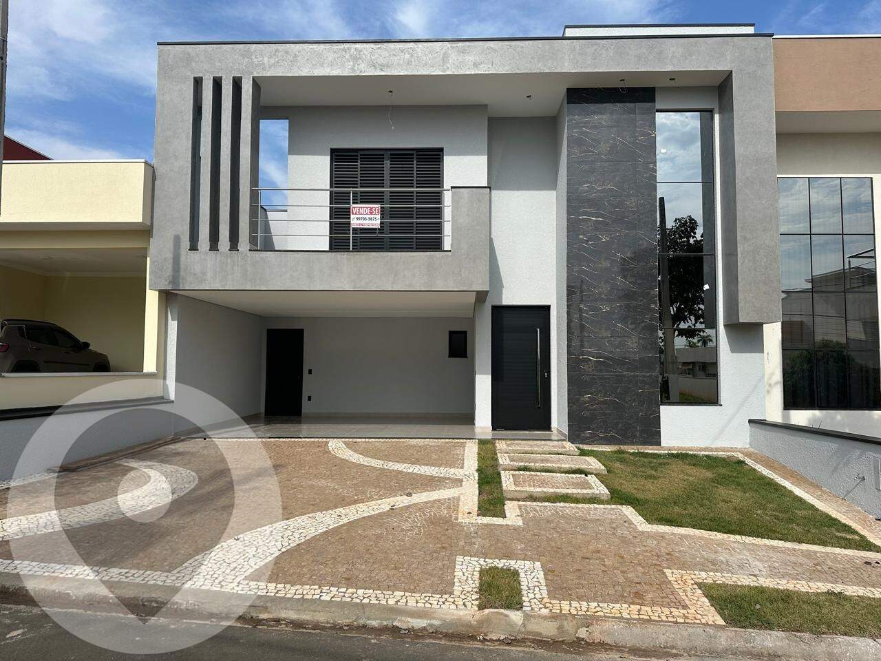 Lindo Sobrado a venda no Condominio Olivio Franceschini em Hortolandia, com 03 quartos, 01 suite, sala de estar e sala de jantar em porcelanato, lavabo, cozinha em porcelanato e sancas, 01 quarto escritorio no pavimento inferior, 01 banheiro suite e 01 banheiro social em porcelanato, lavanderia. A casa tem preparação de ar condicionado e agua quente. Garagem para 04 carros, sendo 02 cobertos.