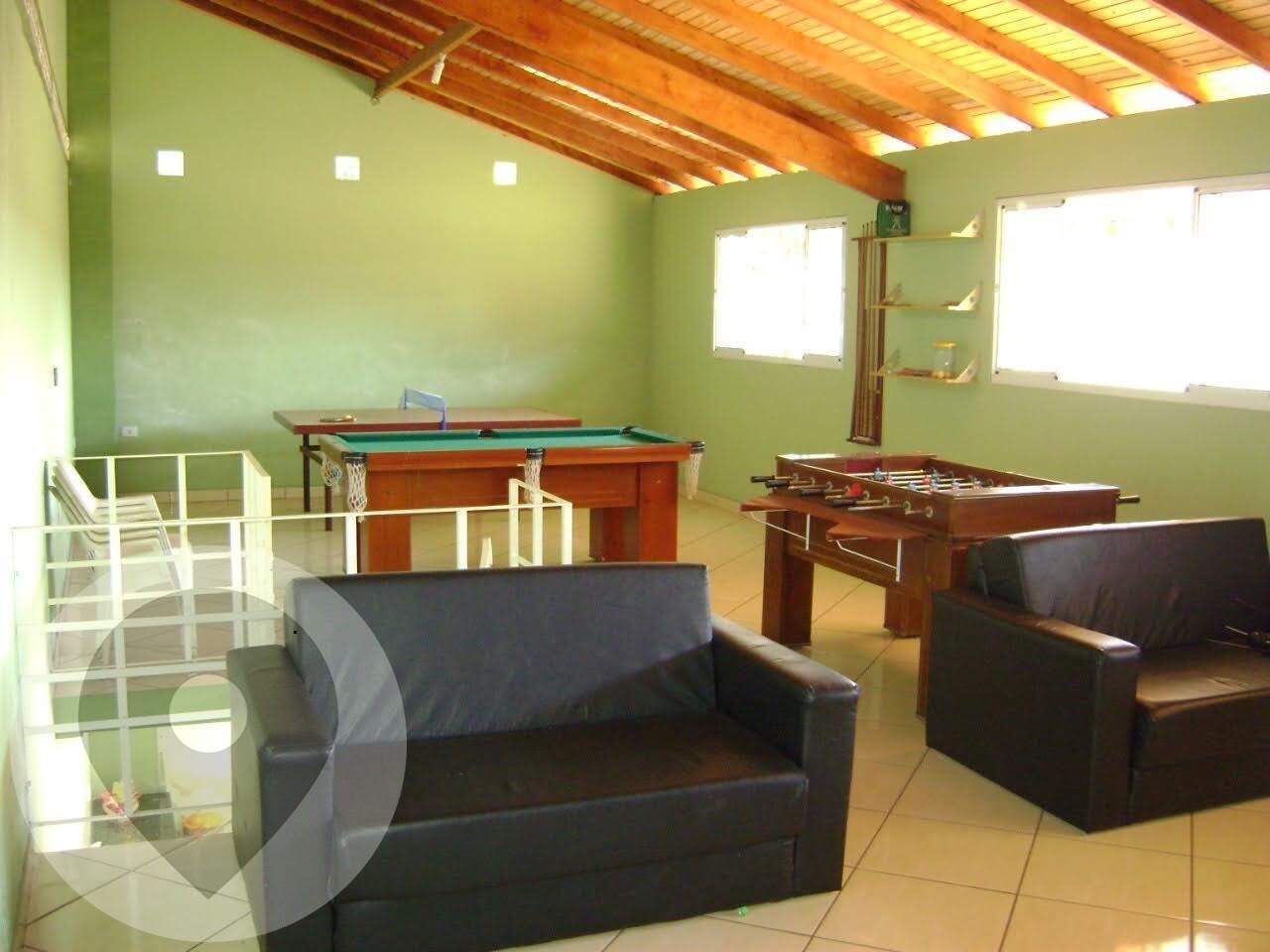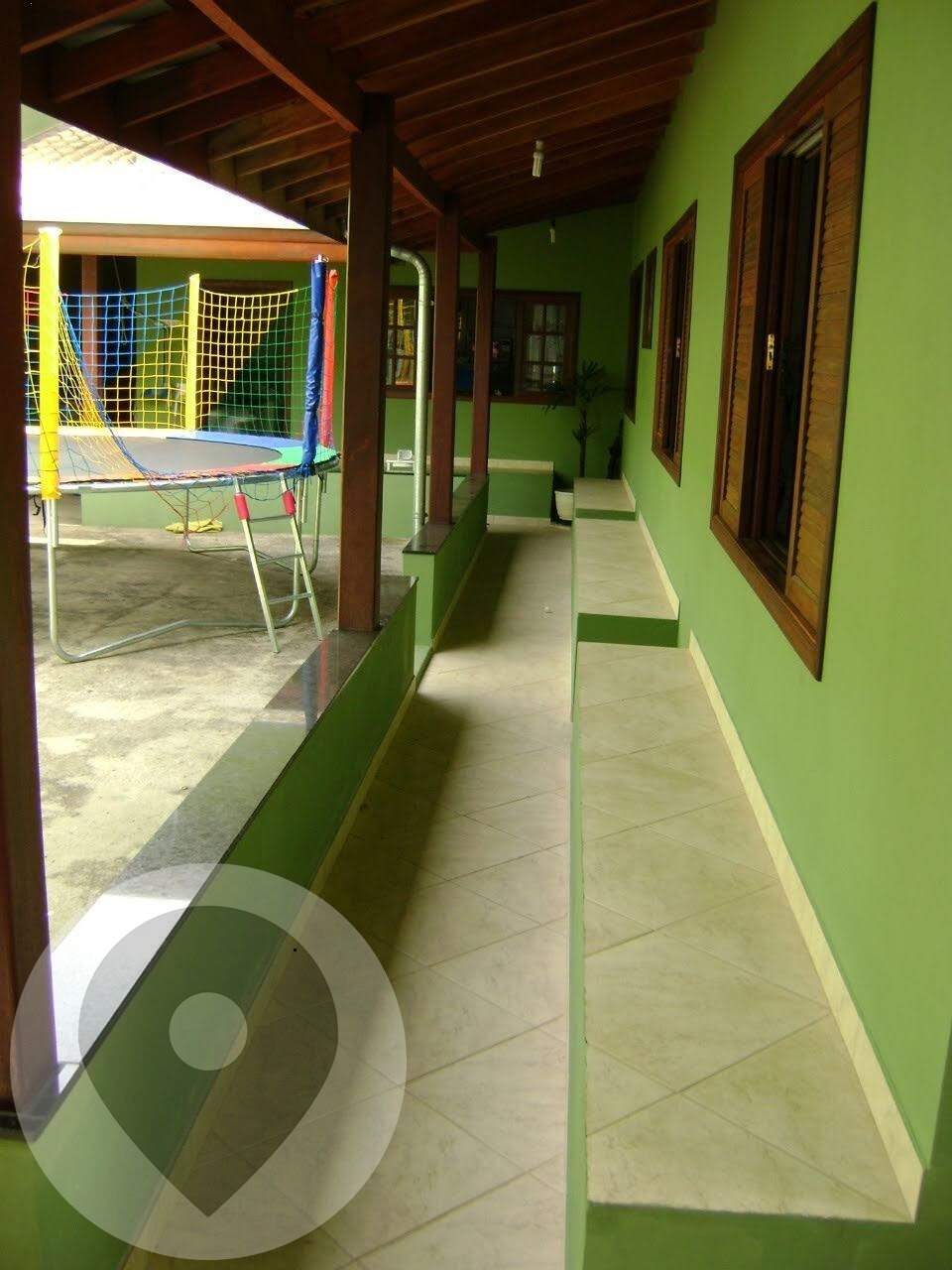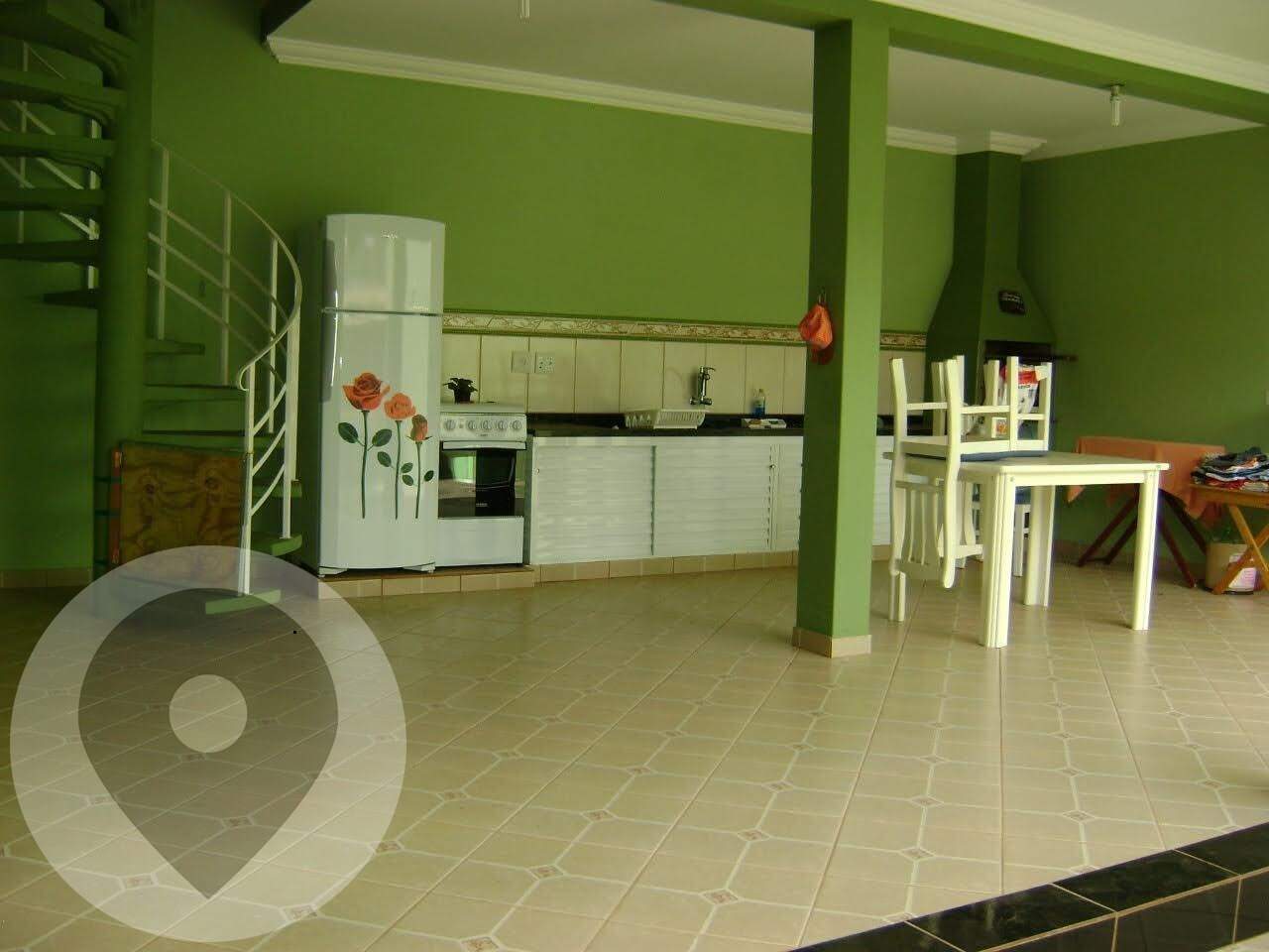 Quintal com área coberta com churrasqueira e salão de jogos na parte superior .