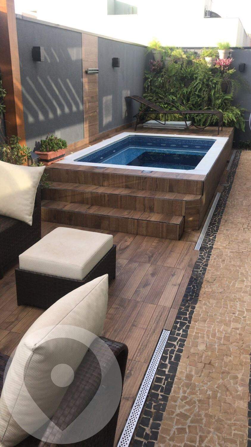 Piscina com acabamento de pastilhas cerâmicas (cor cobalto), 2 jatos na área da prainha, com iluminação de led interna, com cascata, casa de máquinas/bomba piscina .