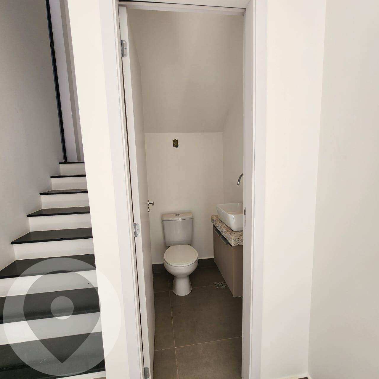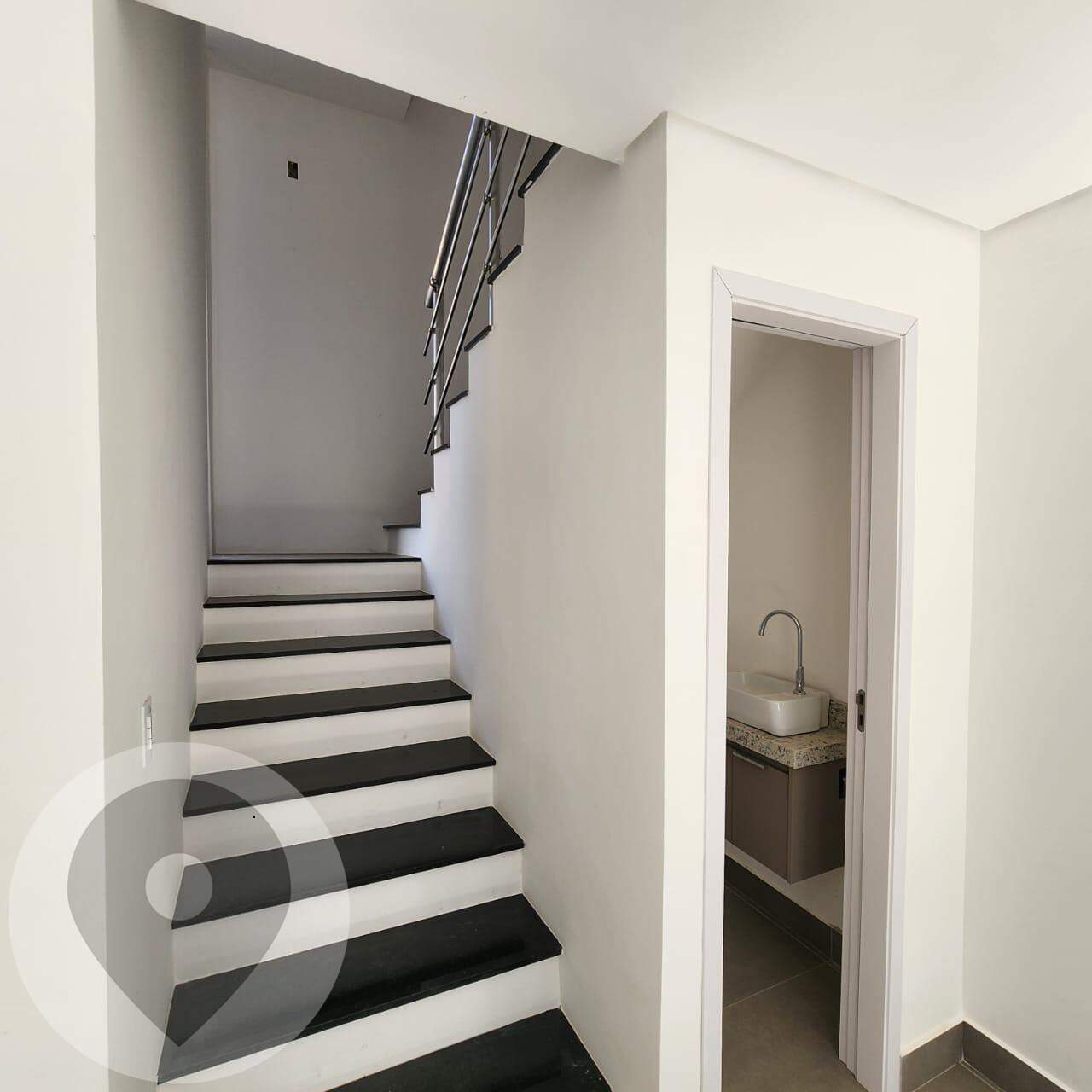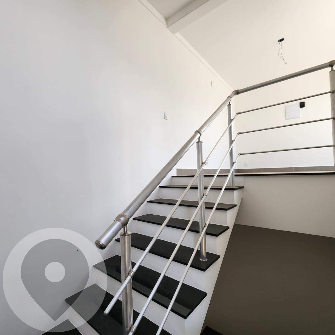 ? Banheiros com bancadas em granito e escada no mesmo padrão