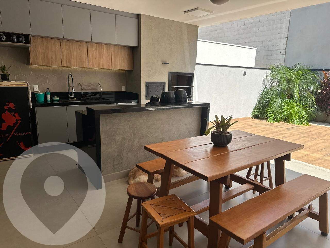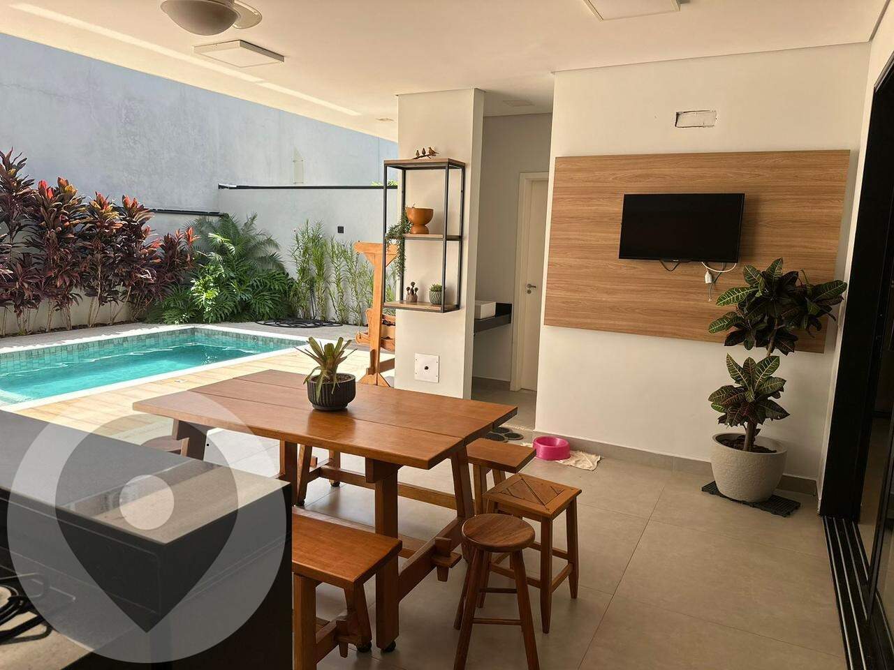 Área gourmet: churrasqueira + espaço externo / piscina