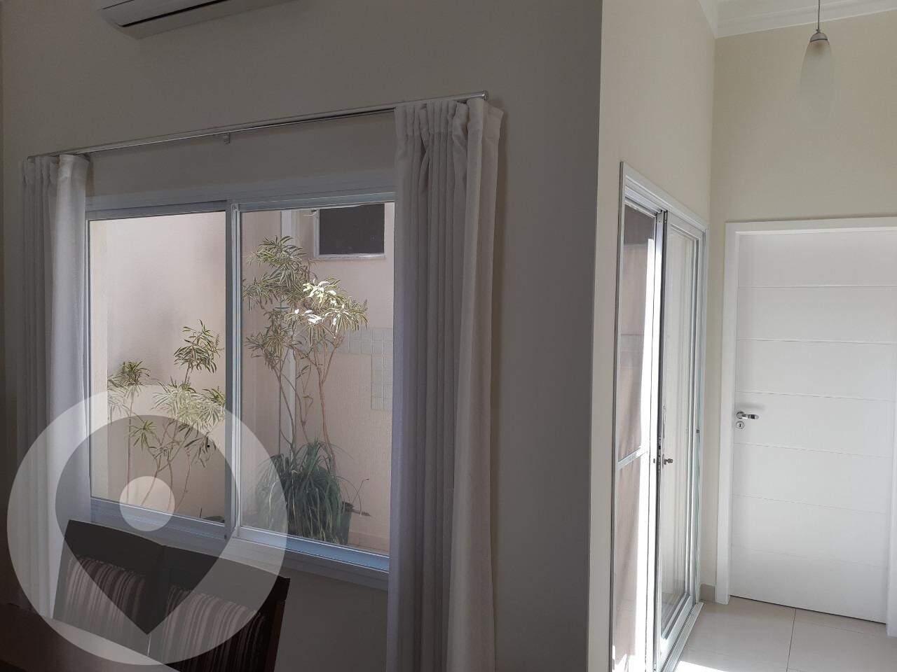 Casa térrea com facha imponente e terraço coberto (cobertura policarbonato), ambientes arejados e com ótima entrada de luz natural. Encanamento de água aquecida e quartos preparados para instalação de ar condicionado. Localizado num condomínio tranquilo, com segurança, portaria 24h e excelente área de lazer.