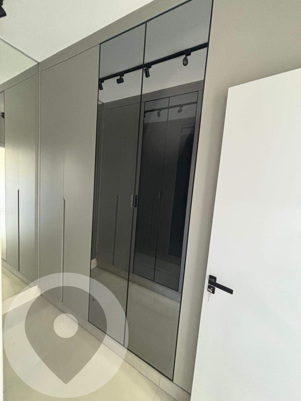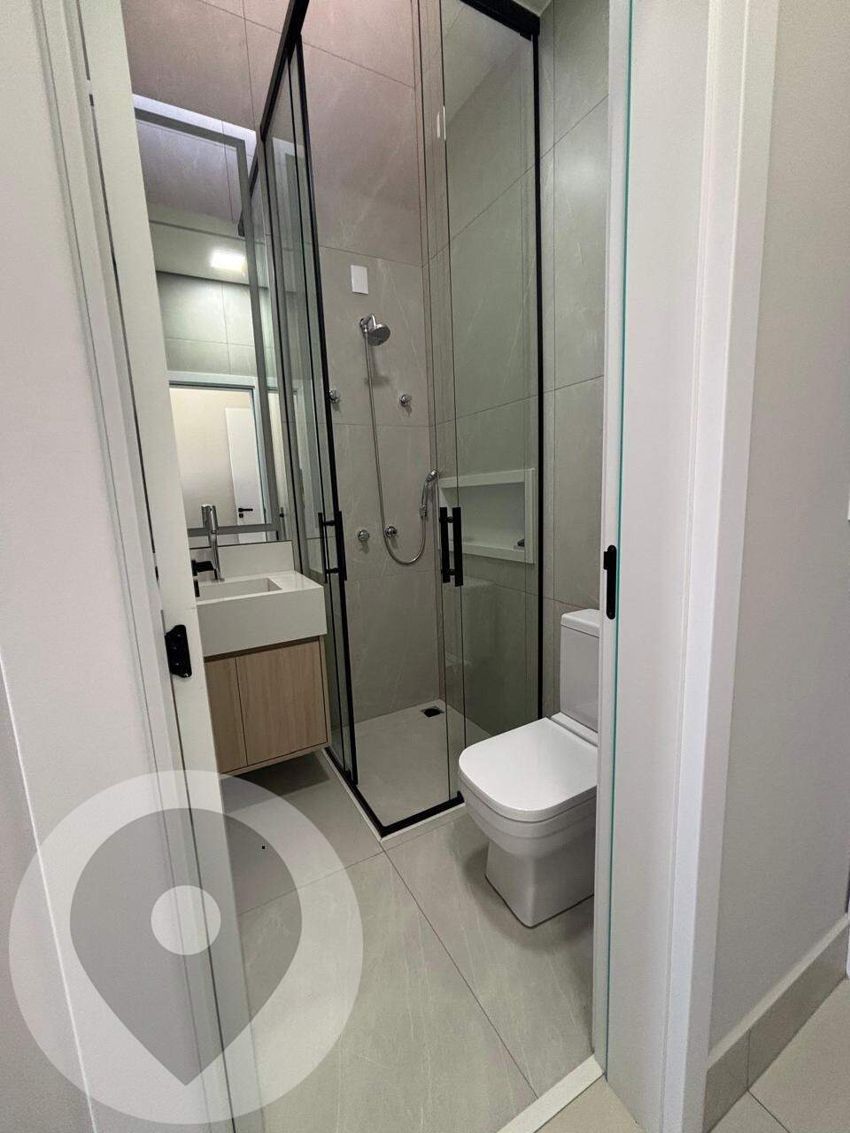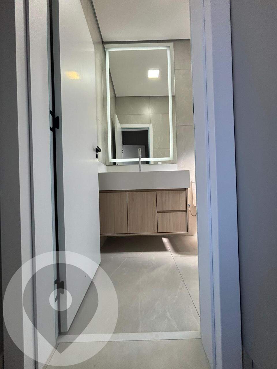 Lavabo e 4 banheiros completos, todos com box de vidro temperado até o teto e espelhos com iluminação de LED.