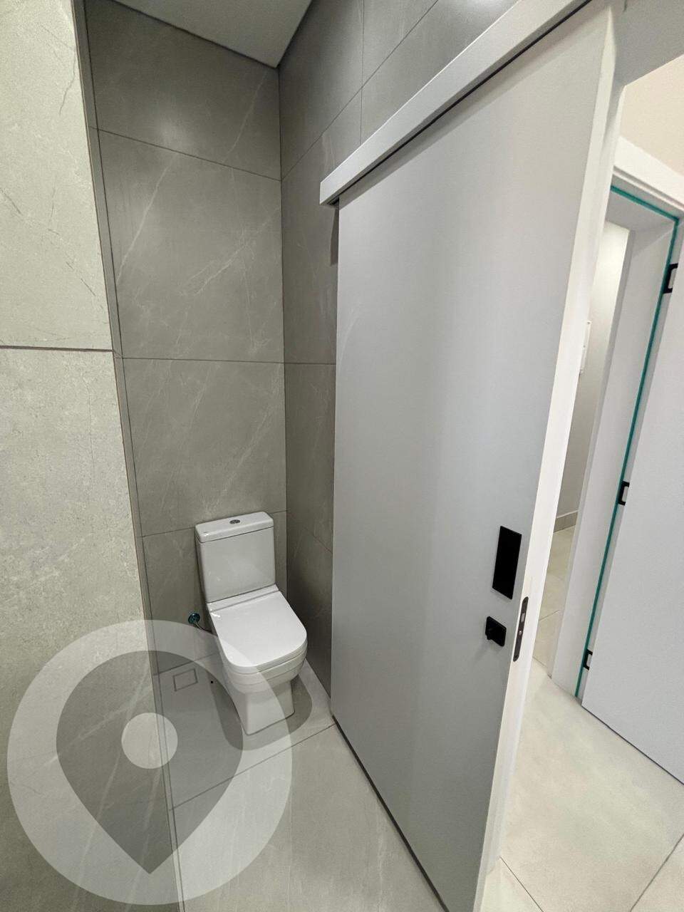 Pias dos banheiros em porcelanato branco, adicionando um toque de elegância.