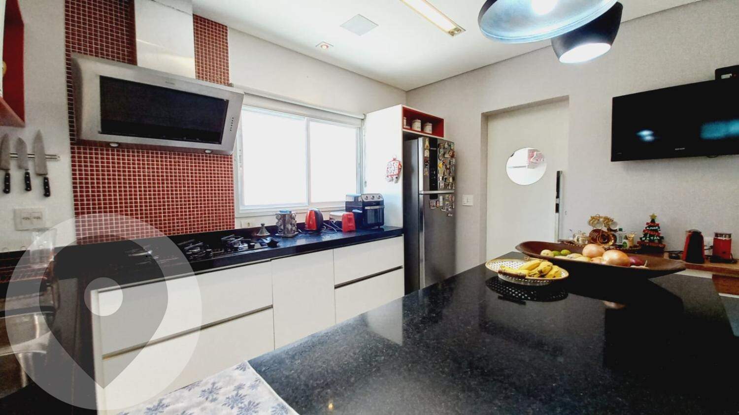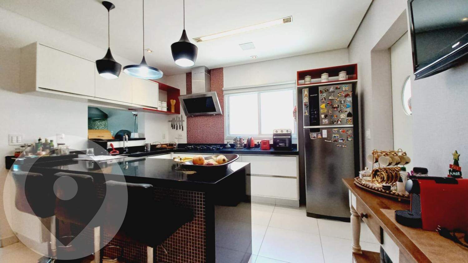 No piso térreo, há uma ampla sala para dois ambientes, sala de estar e jantar, um lavabo e uma suíte. A cozinha, totalmente planejada e equipada com eletrodomésticos embutidos, é um destaque, juntamente com a despensa e a lavanderia independente, que inclui um banheiro de serviço. O espaço gourmet com churrasqueira, forno a lenha e chopeira, juntamente com a sala de TV e o espaço para festas, oferecem ótimas opções de entretenimento.