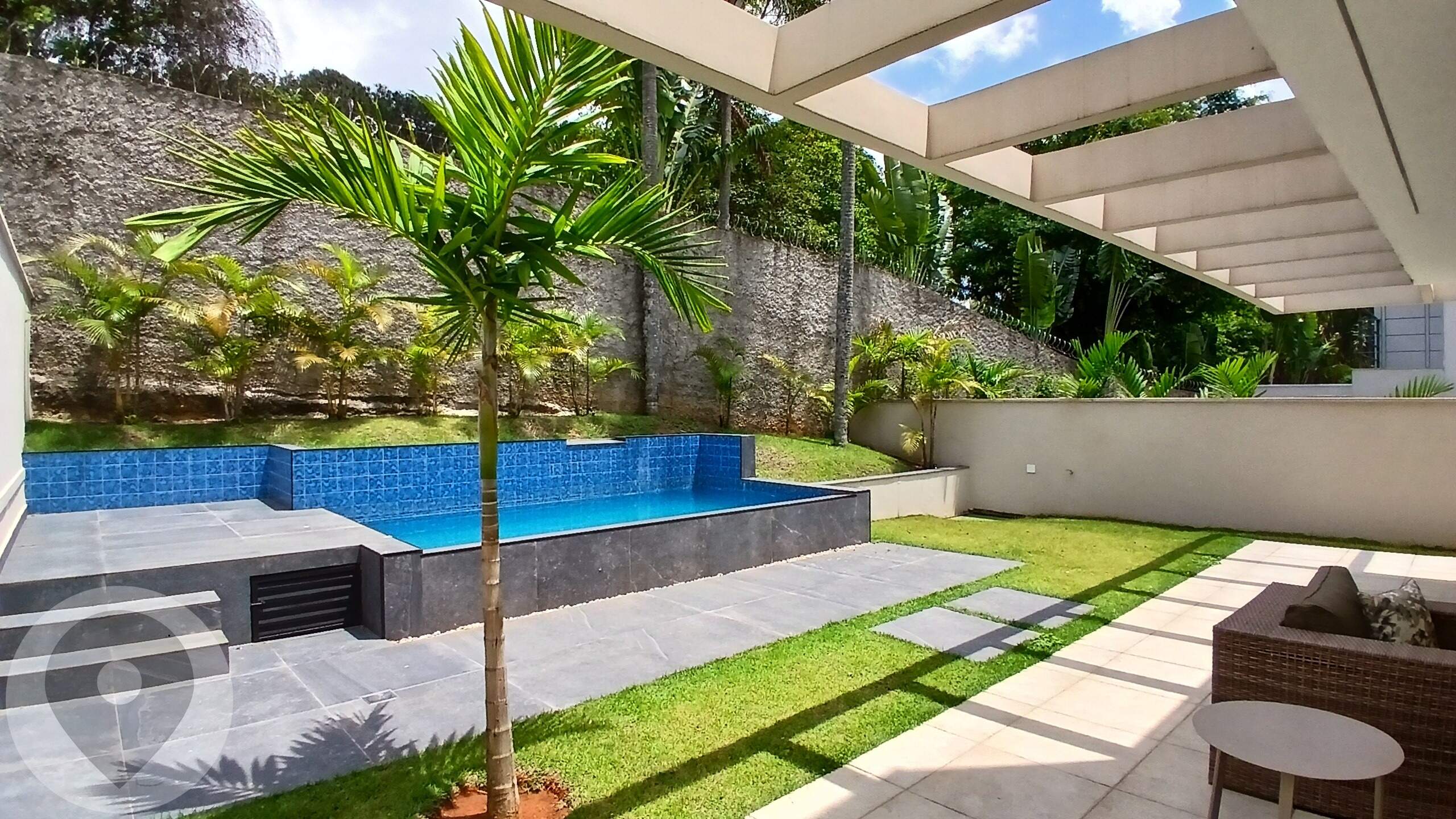 Sobrado com arquitetura moderna , privilegiando a presença de luz natural e apresentando ambientes integrados e funcionais . Piso térreo com hall de entrada , amplo living , lavabo . espaço para despensa . área de serviço , cozinha com vista para um belo quintal com piscina e jardim , área gourmet e banheiro externo . No piso superior , 3 suítes com sacada sendo a máster com espaço para closet e banheiro com pia dupla . Persianas automatizadas nas suítes . Vagas para 4 veículos .Obs : Valor sem o mobiliário .