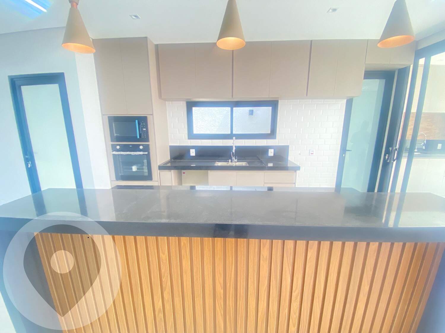 Cozinha equipada com armários planejados;