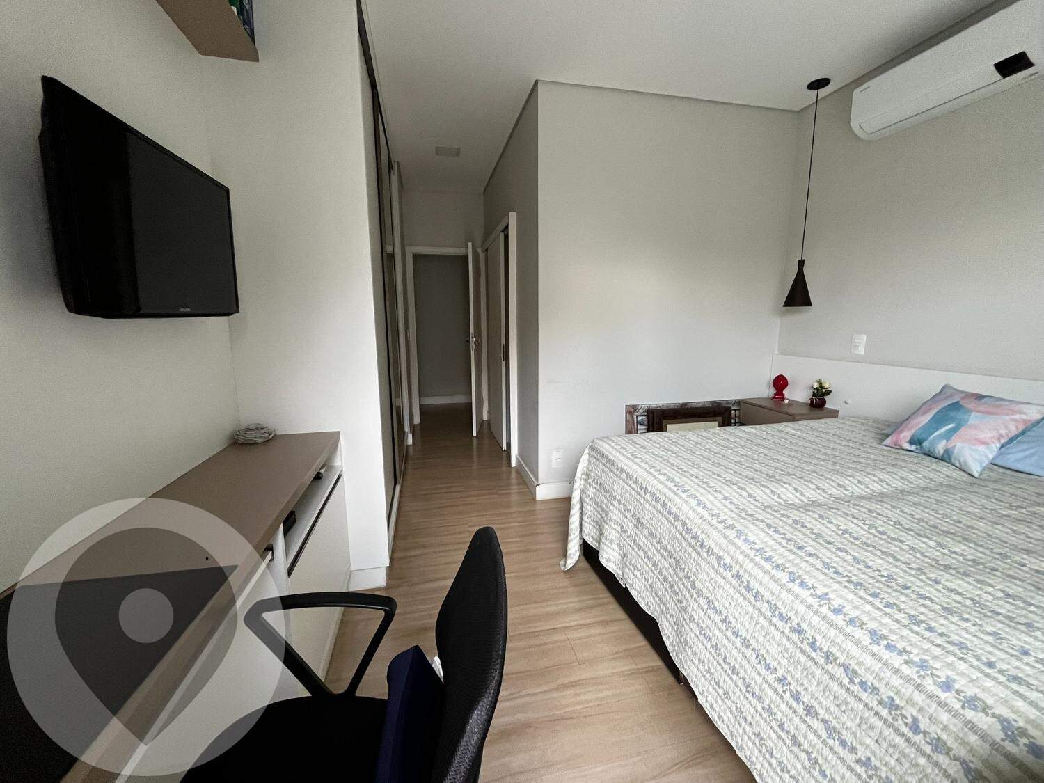Composto por três suítes espaçosas, todas equipadas com armários sob medida, garantindo funcionalidade e requinte.