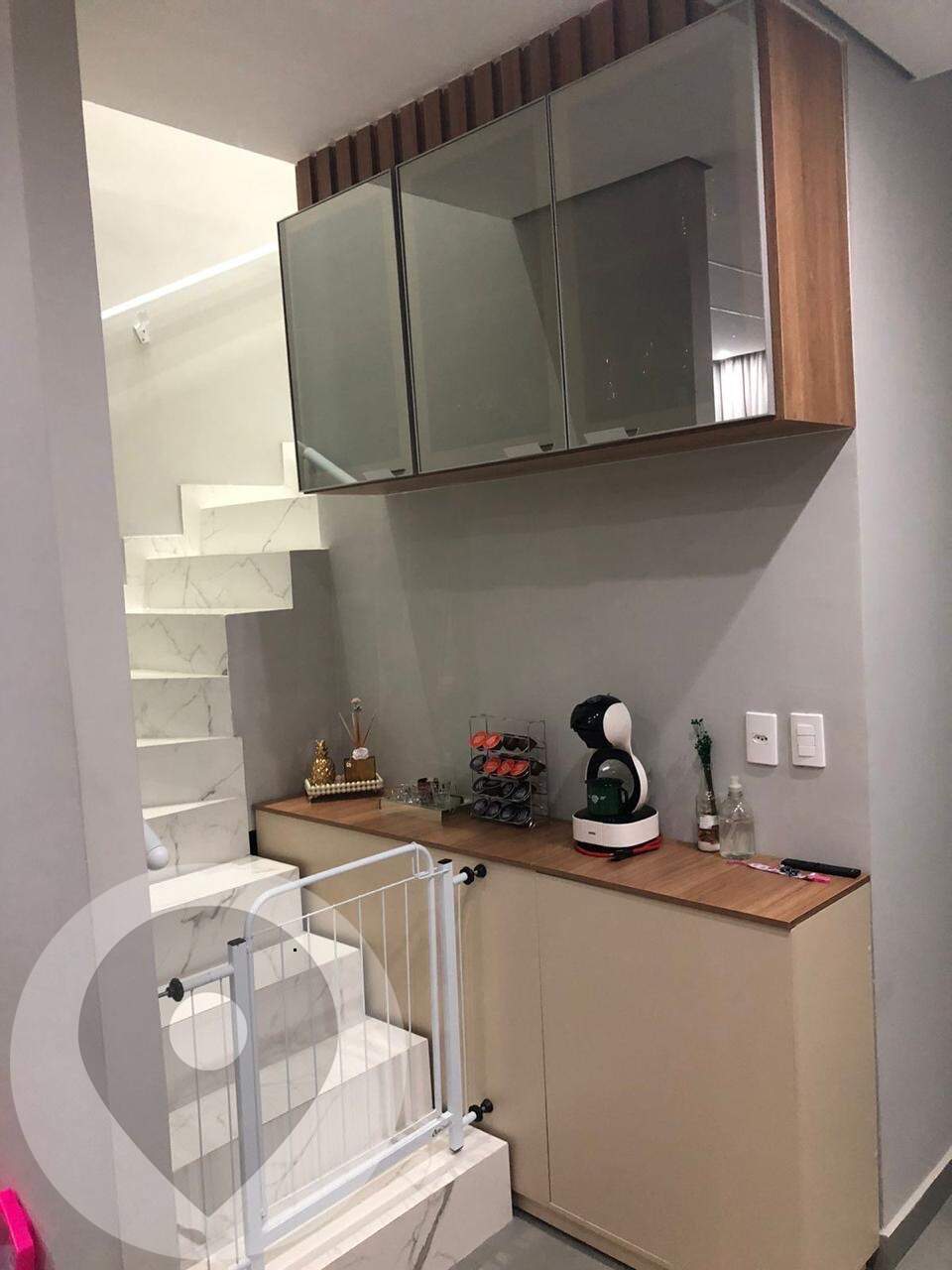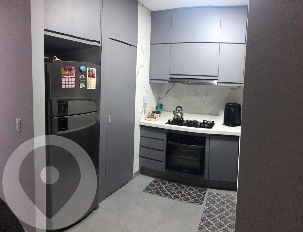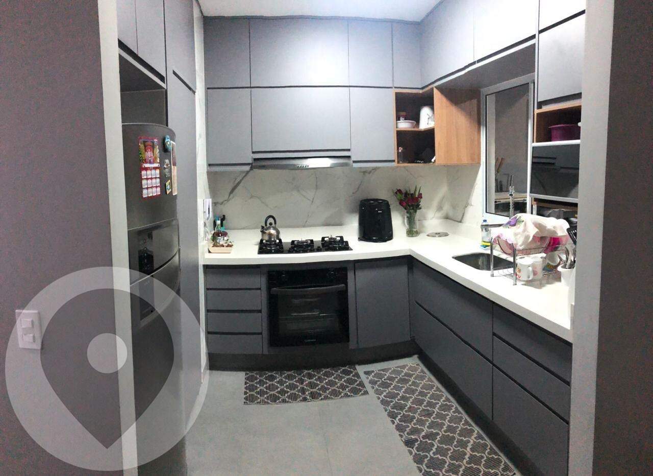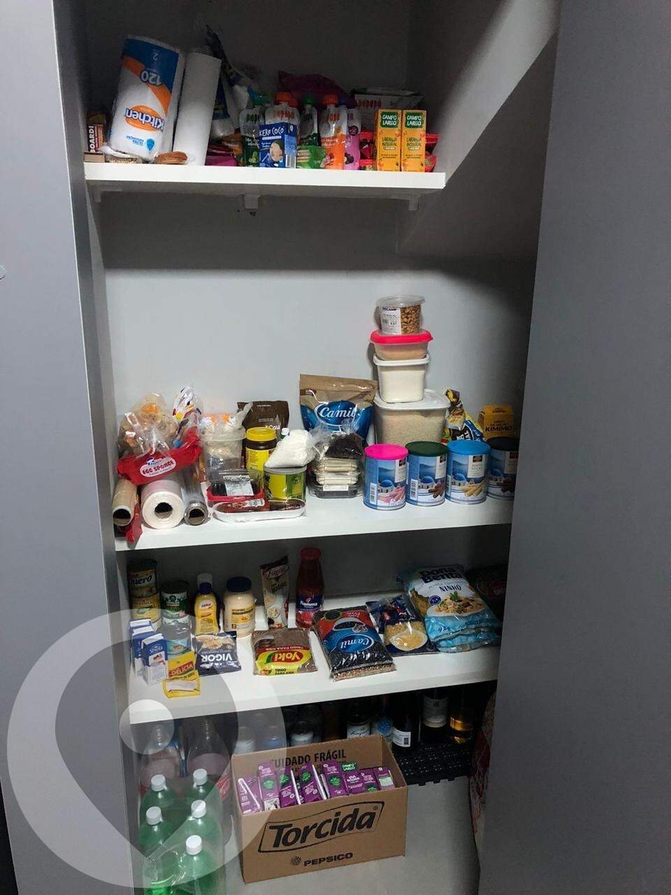 Cozinha equipada com armários planejados e uma prática despensa, proporcionando organização e funcionalidade.