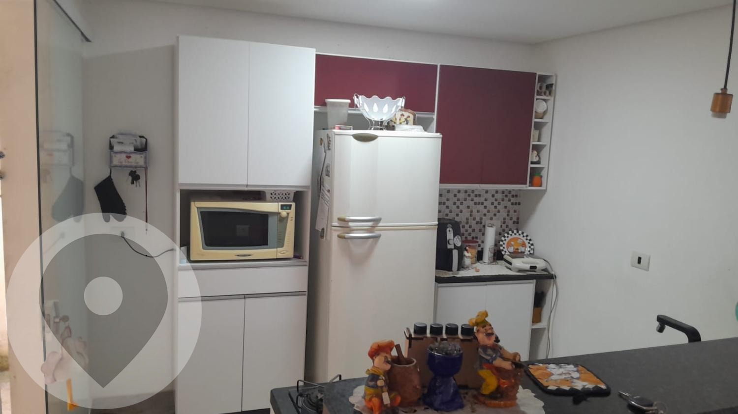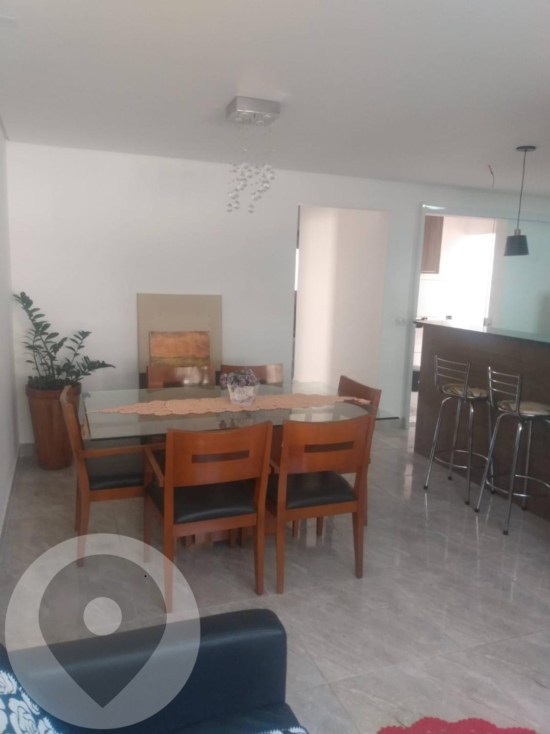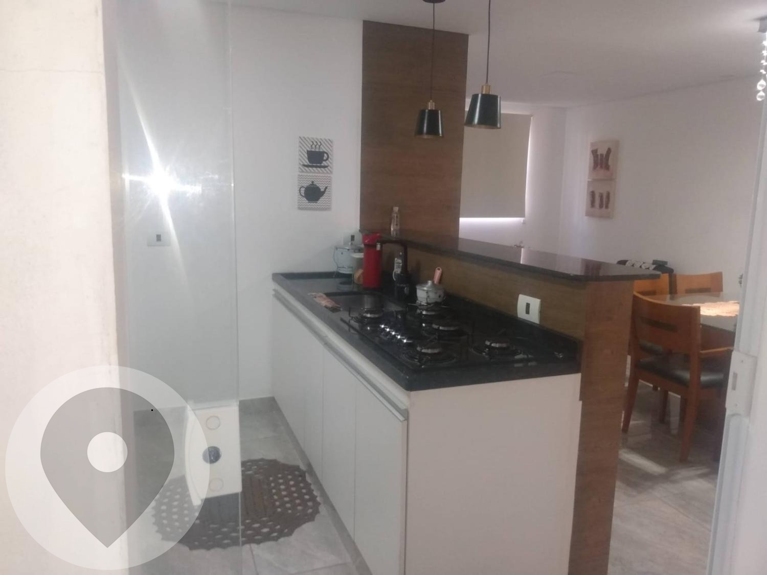 Teto rebaixado na cozinha, lavabo e sala de jantar