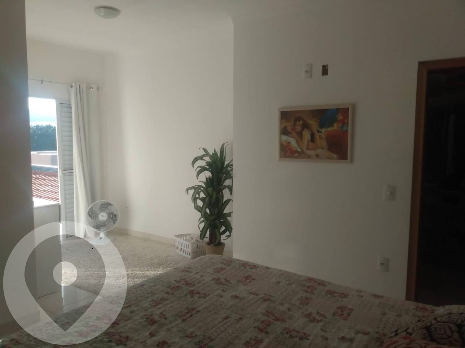 Suíte do casal com sacada e espaço para closet