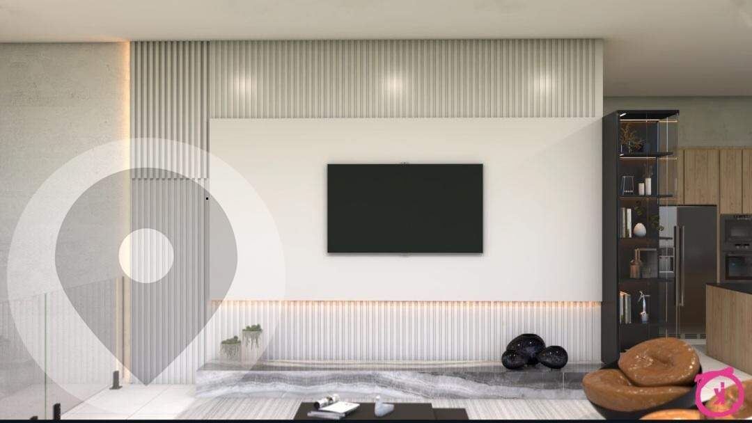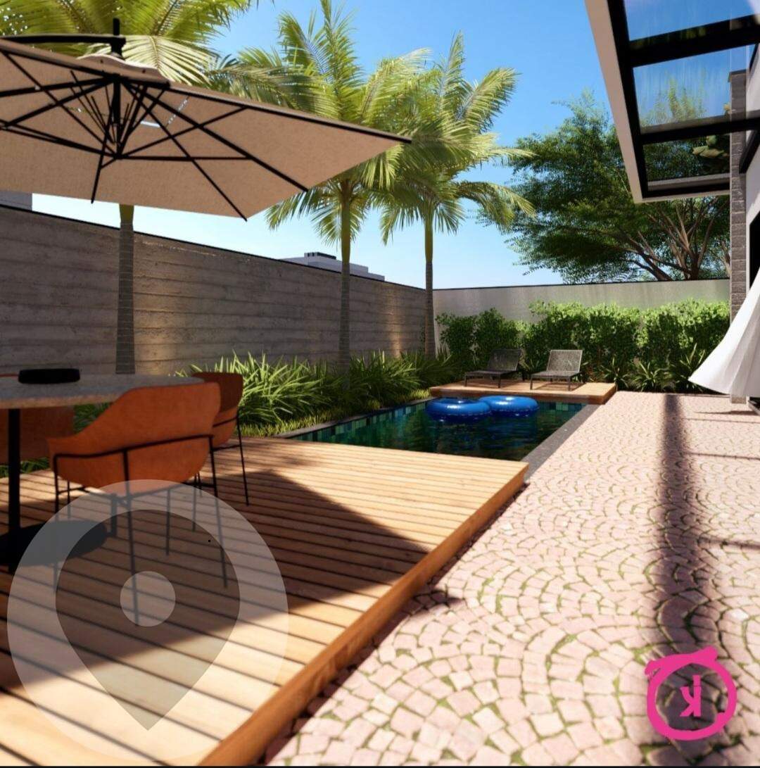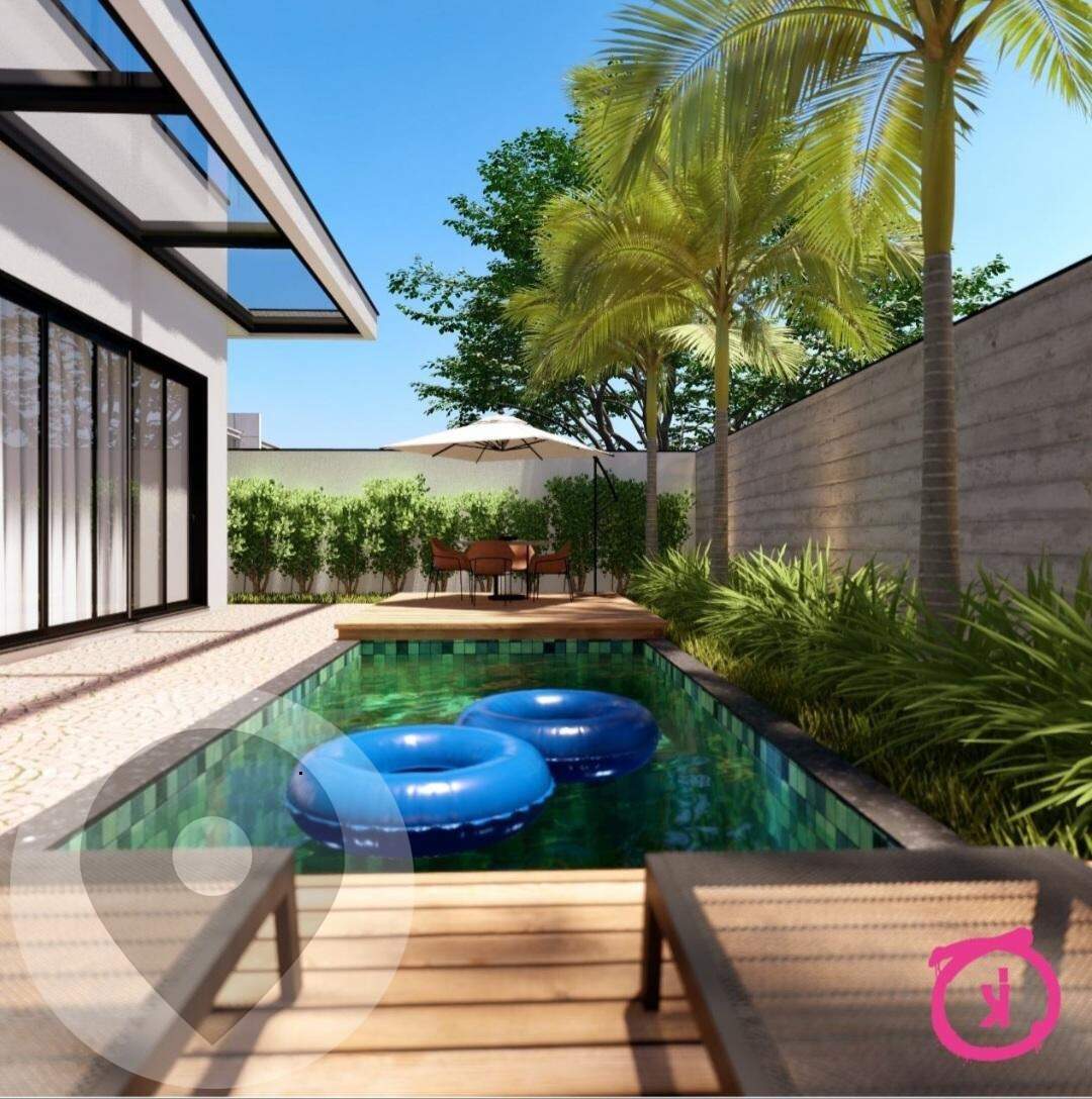 São quatro suítes no Pavimento superior e uma suíte no pavimento inferior, salas amplas, escritório (suíte), cozinha americana com área Gourmet, piscina, vestiário, lavabo e lavanderia.