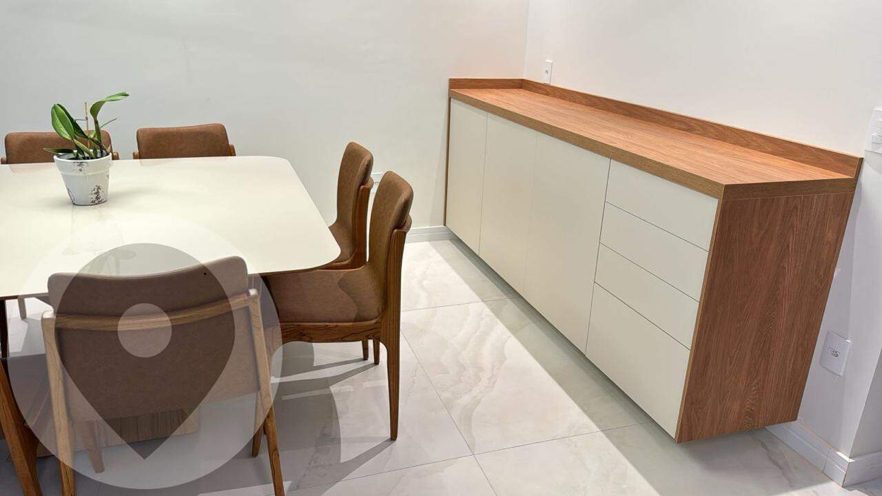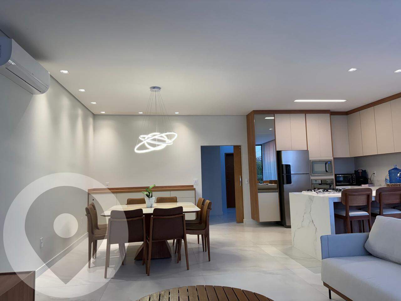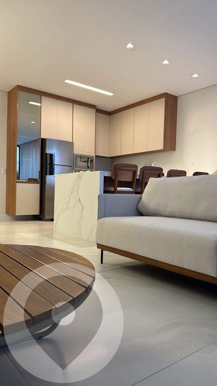 Living integrado entre sala de estar, jantar e cozinha americana com bancada ? um espaço moderno, funcional e convidativo.