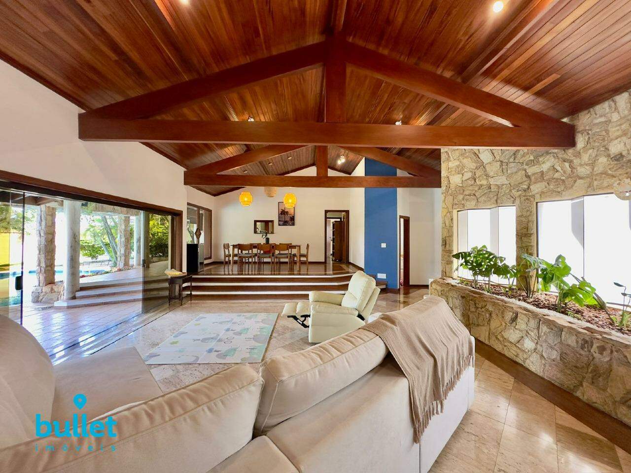 Implantada em um terreno amplo de 1.197 m², esta casa térrea impressiona pela arquitetura sólida, conforto e privacidade, em meio a muito verde e total segurança.