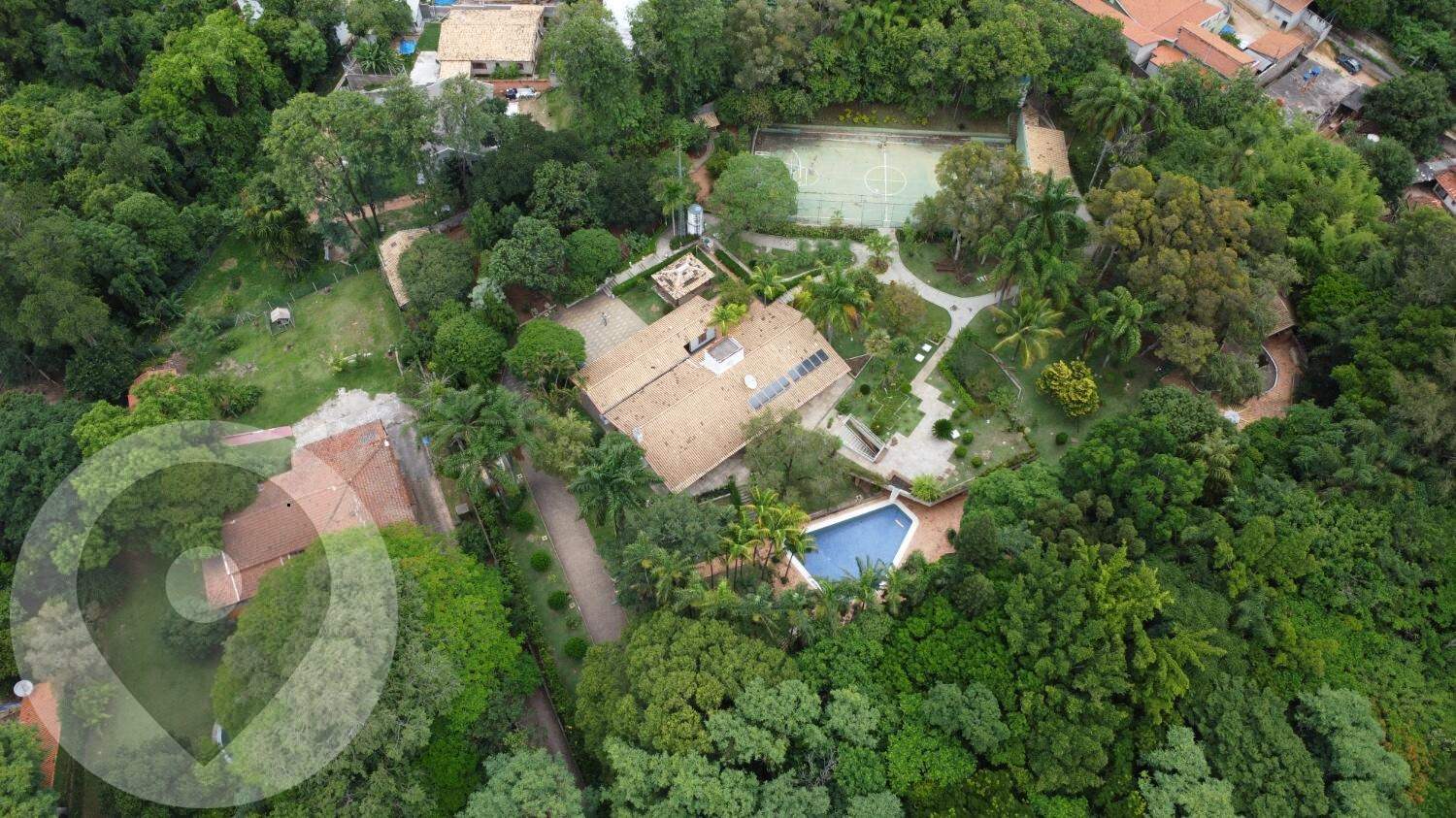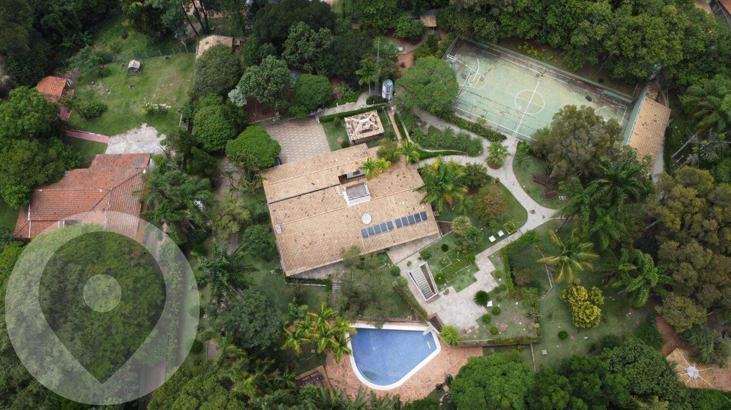 A estrutura conta com uma área construída de 4.620,67m², incluindo uma casa principal com 4 suítes, casa de caseiro e uma área de lazer completa com piscina, quadra de esportes e quiosque com churrasqueiras.