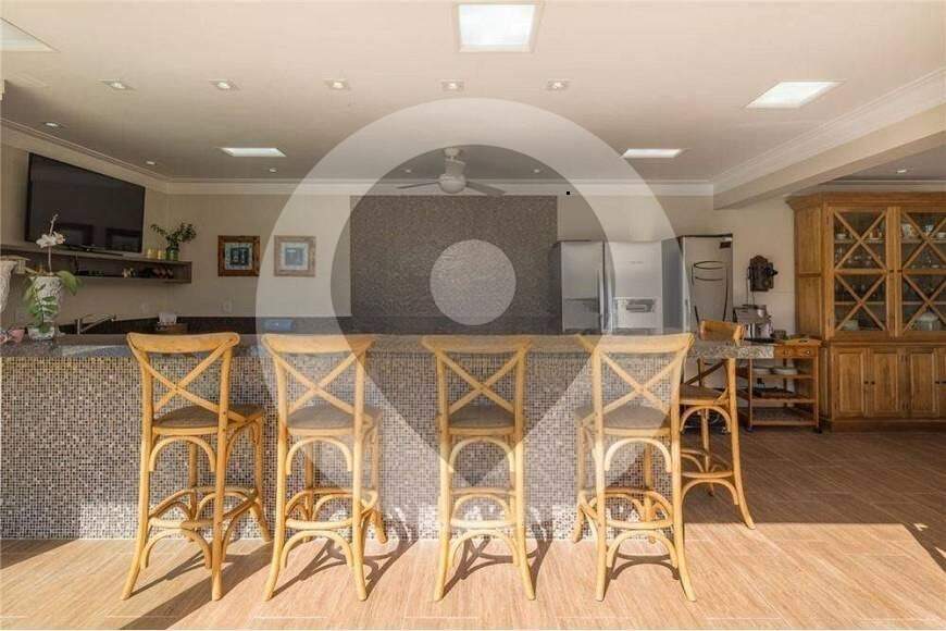 A residência conta ainda com um escritório, cozinha e área de serviço, além de uma varanda aconchegante com vista para o verde exuberante que circunda a propriedade. O espaço gourmet é um convite à gastronomia refinada, complementado por uma piscina orgânica, um campo de futebol e extensas áreas verdes, criando um cenário harmonioso e relaxante.