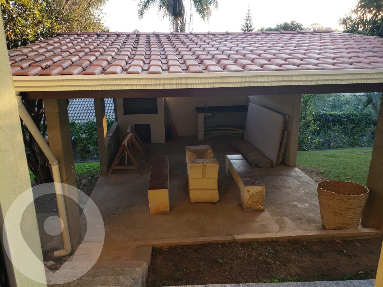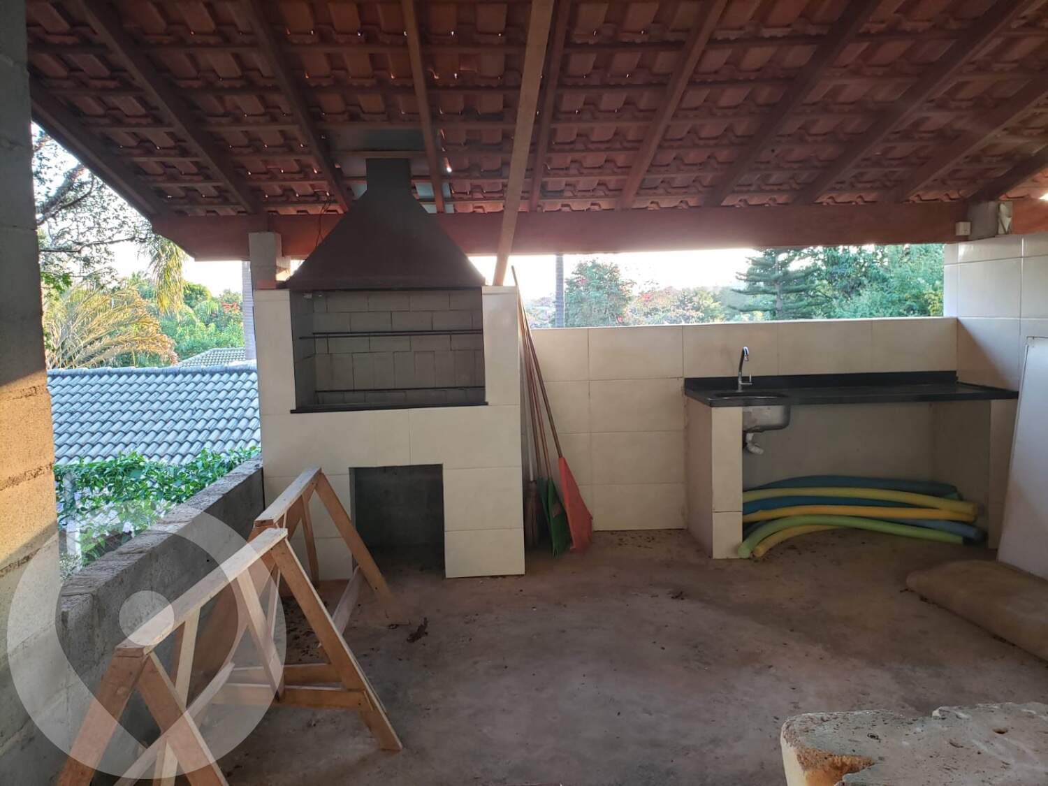 Churrasqueira completa em área inferior do terreno, garantindo mais privacidade
