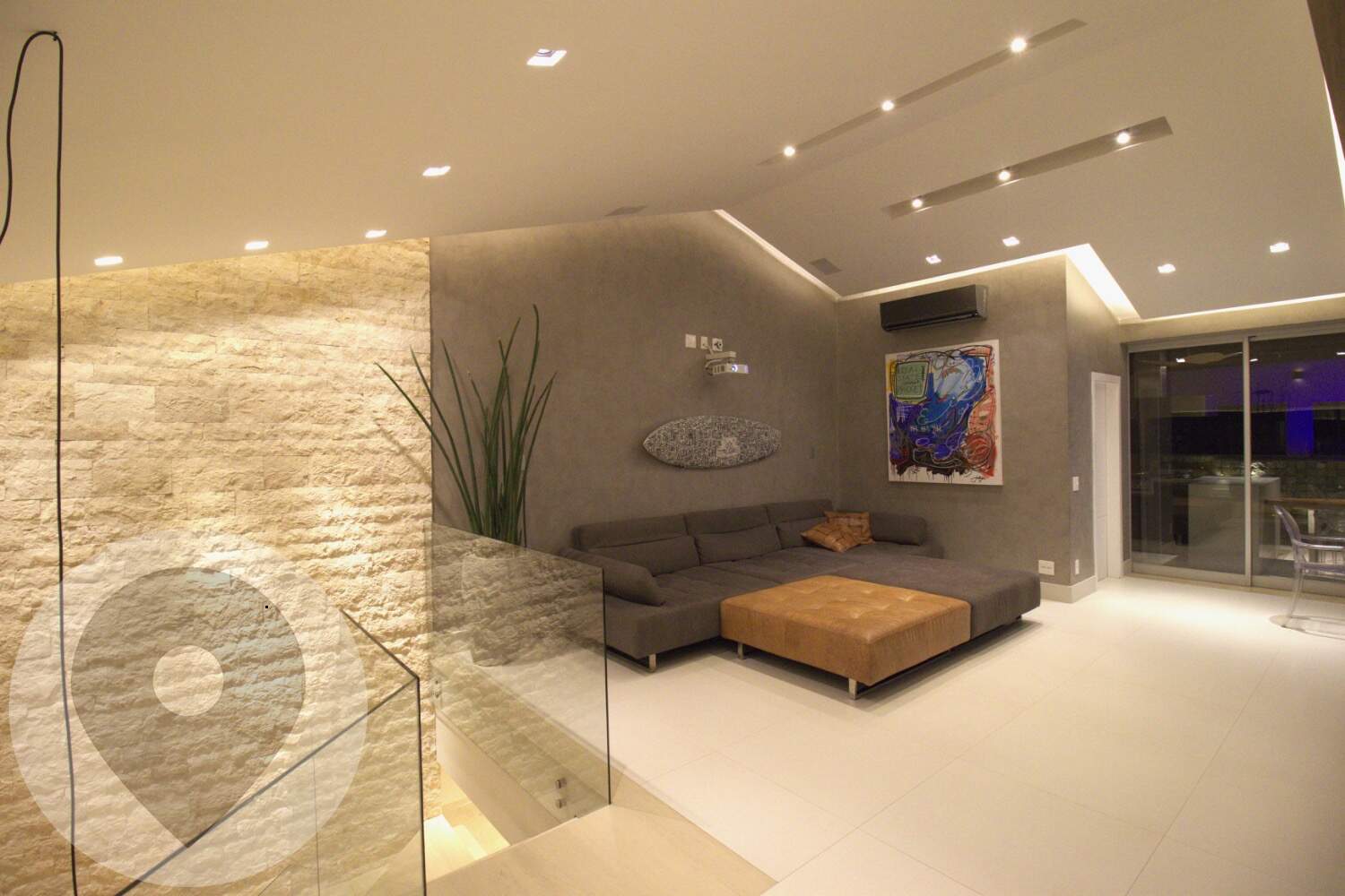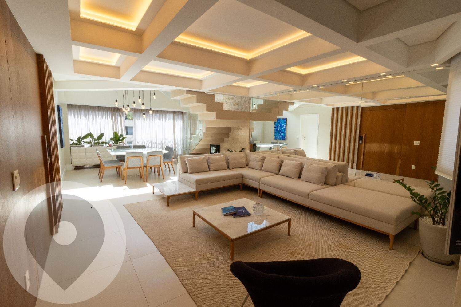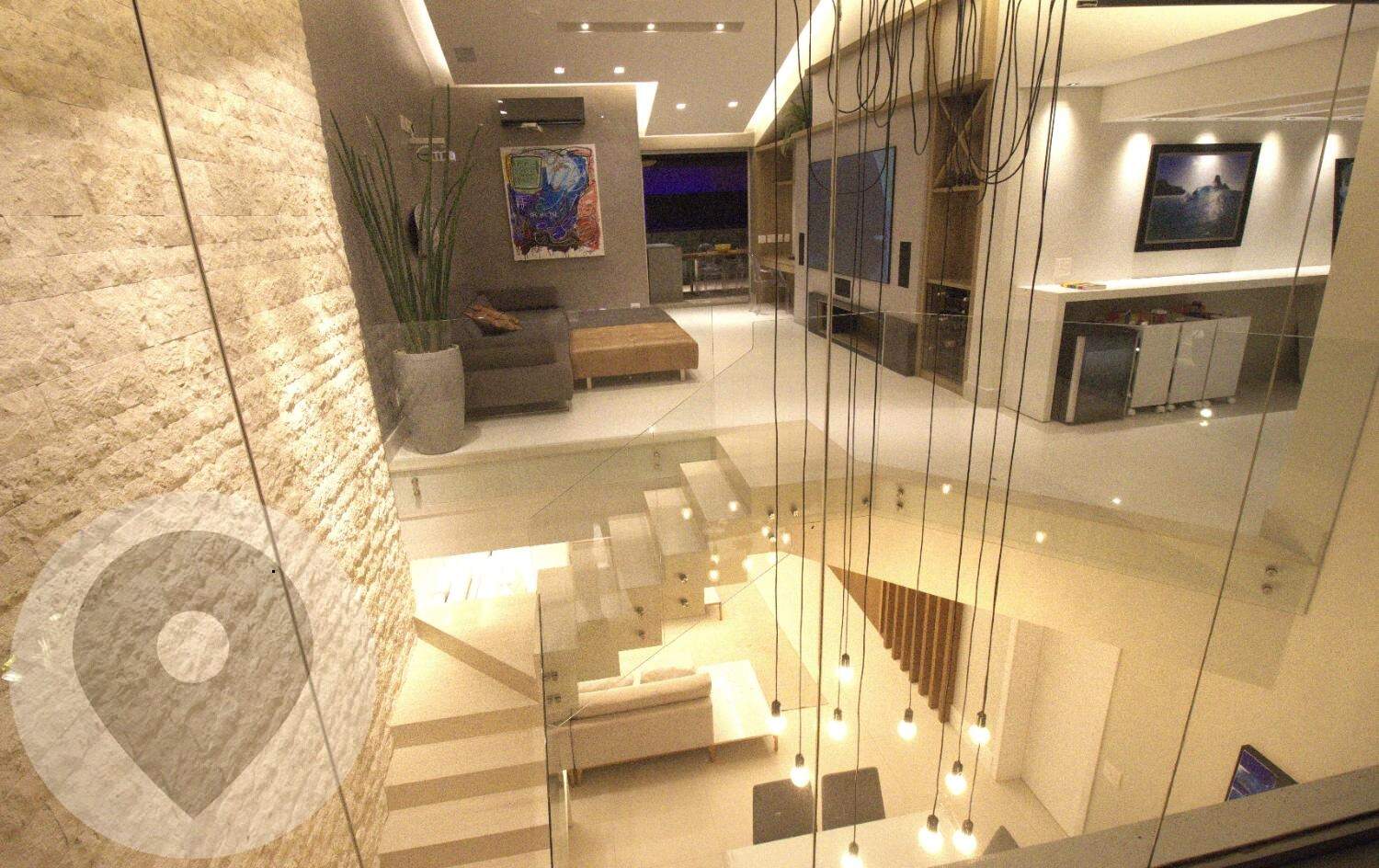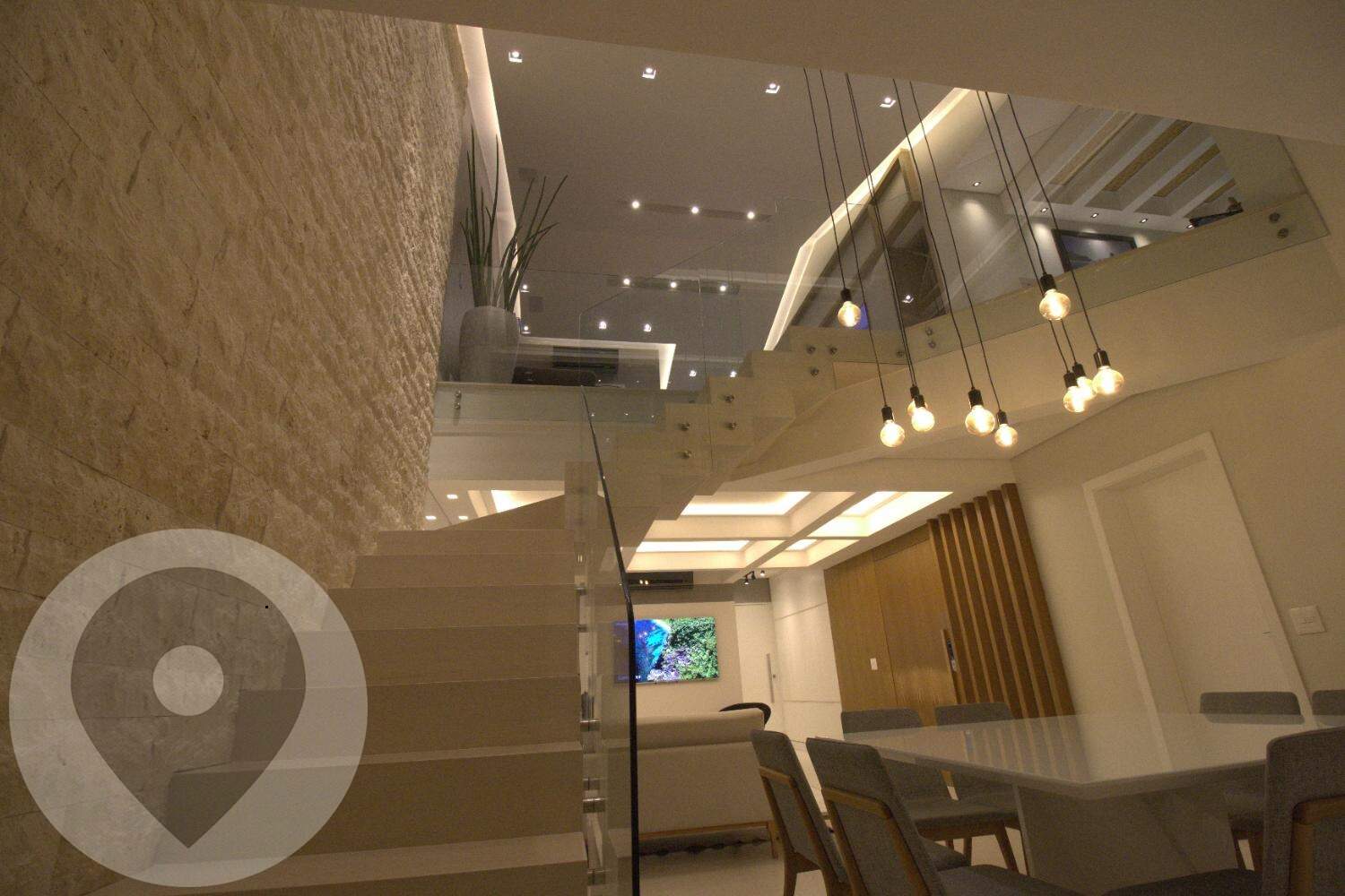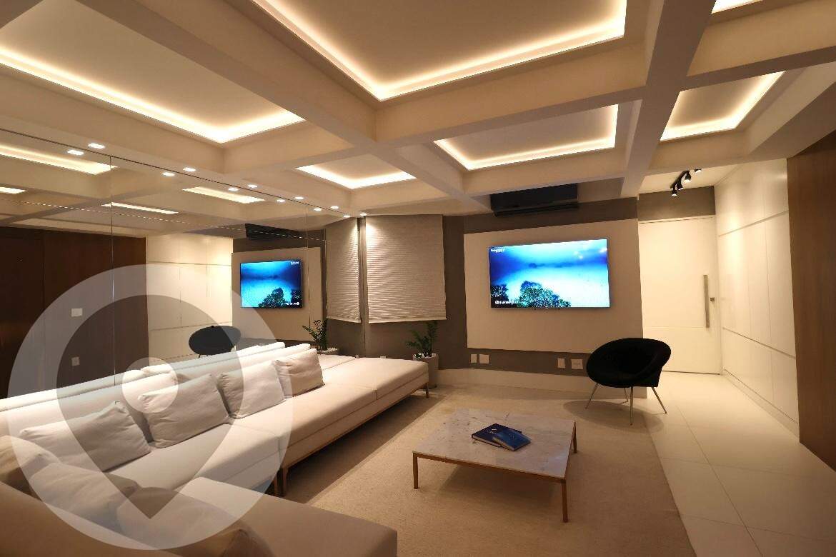 Pé-direito duplo com projeto luminotécnico em LED;