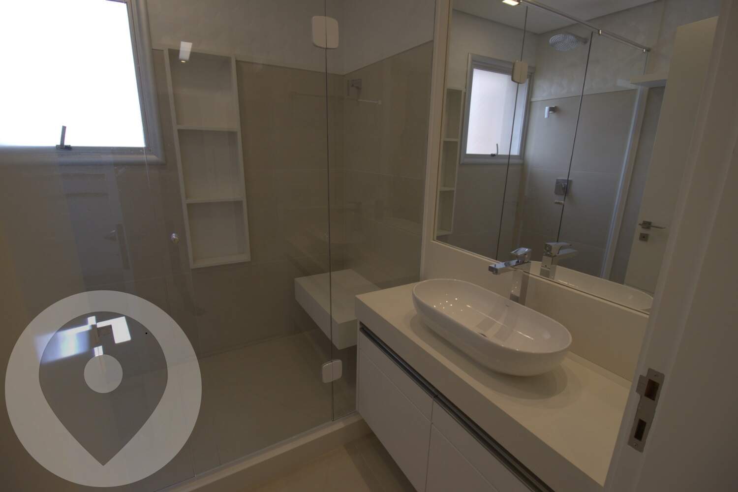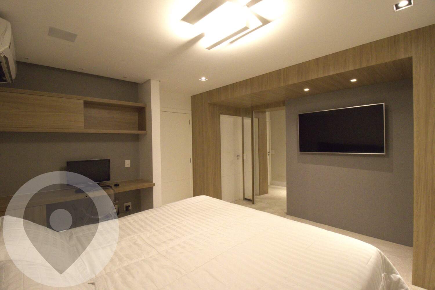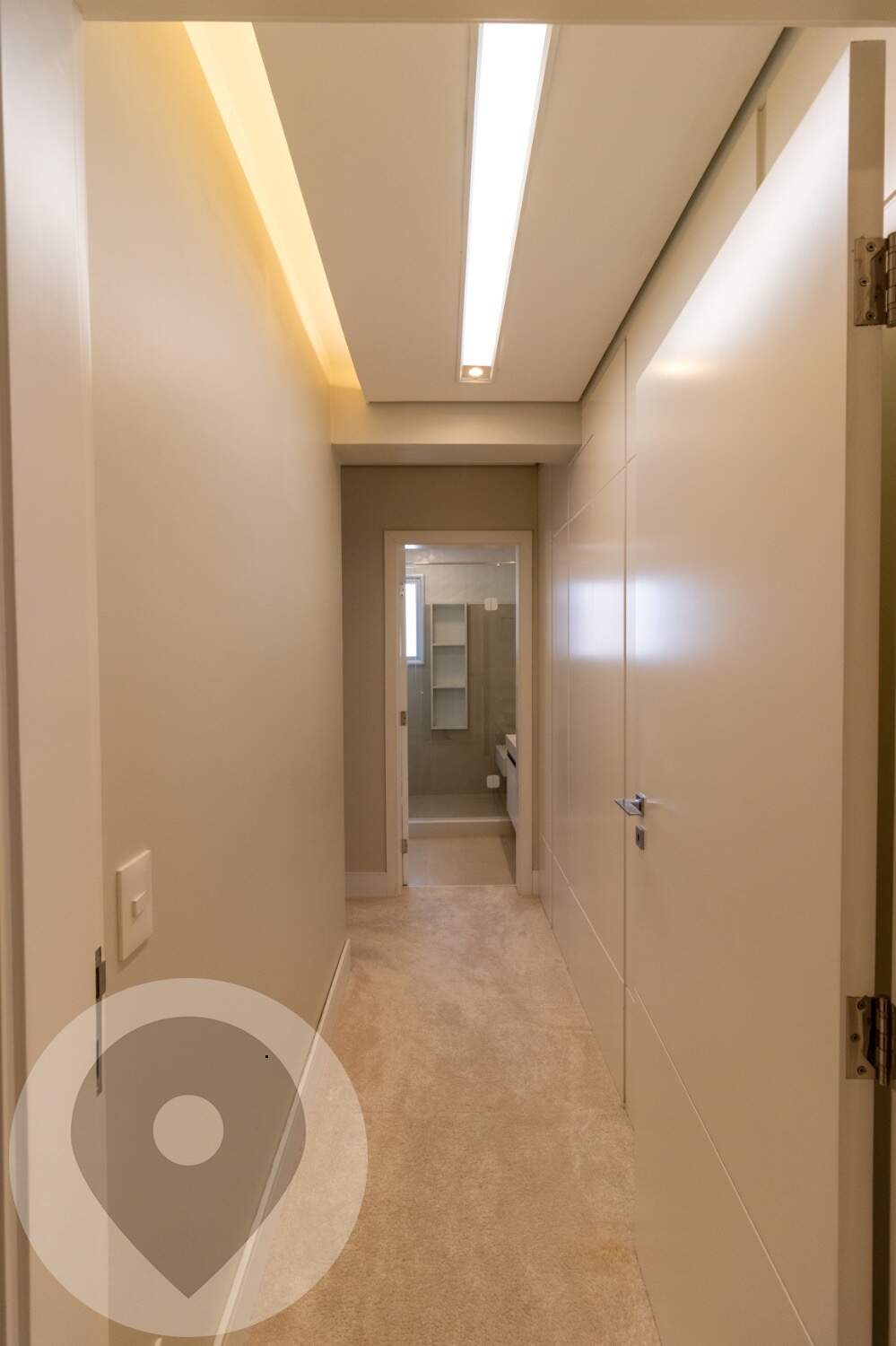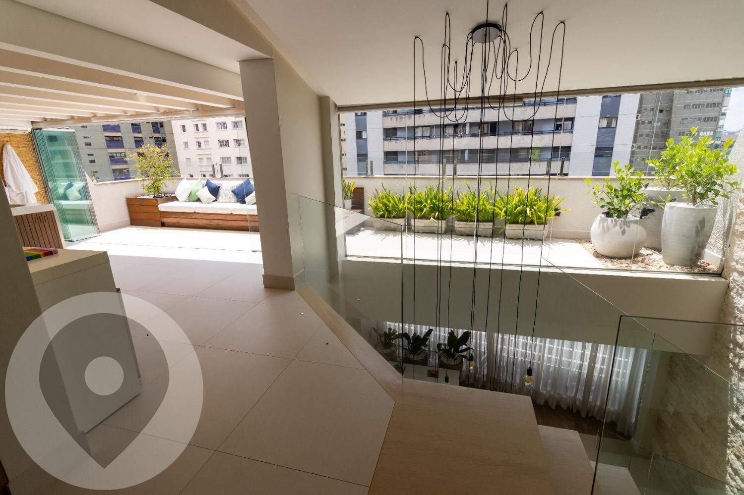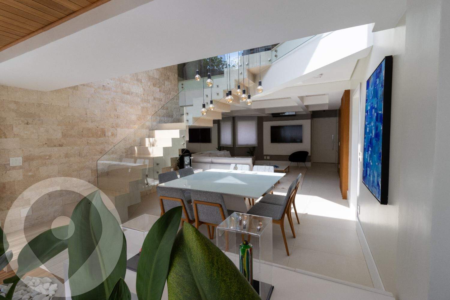 Pé-direito duplo com projeto luminotécnico em LED;