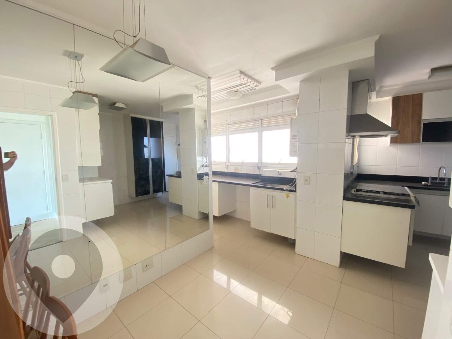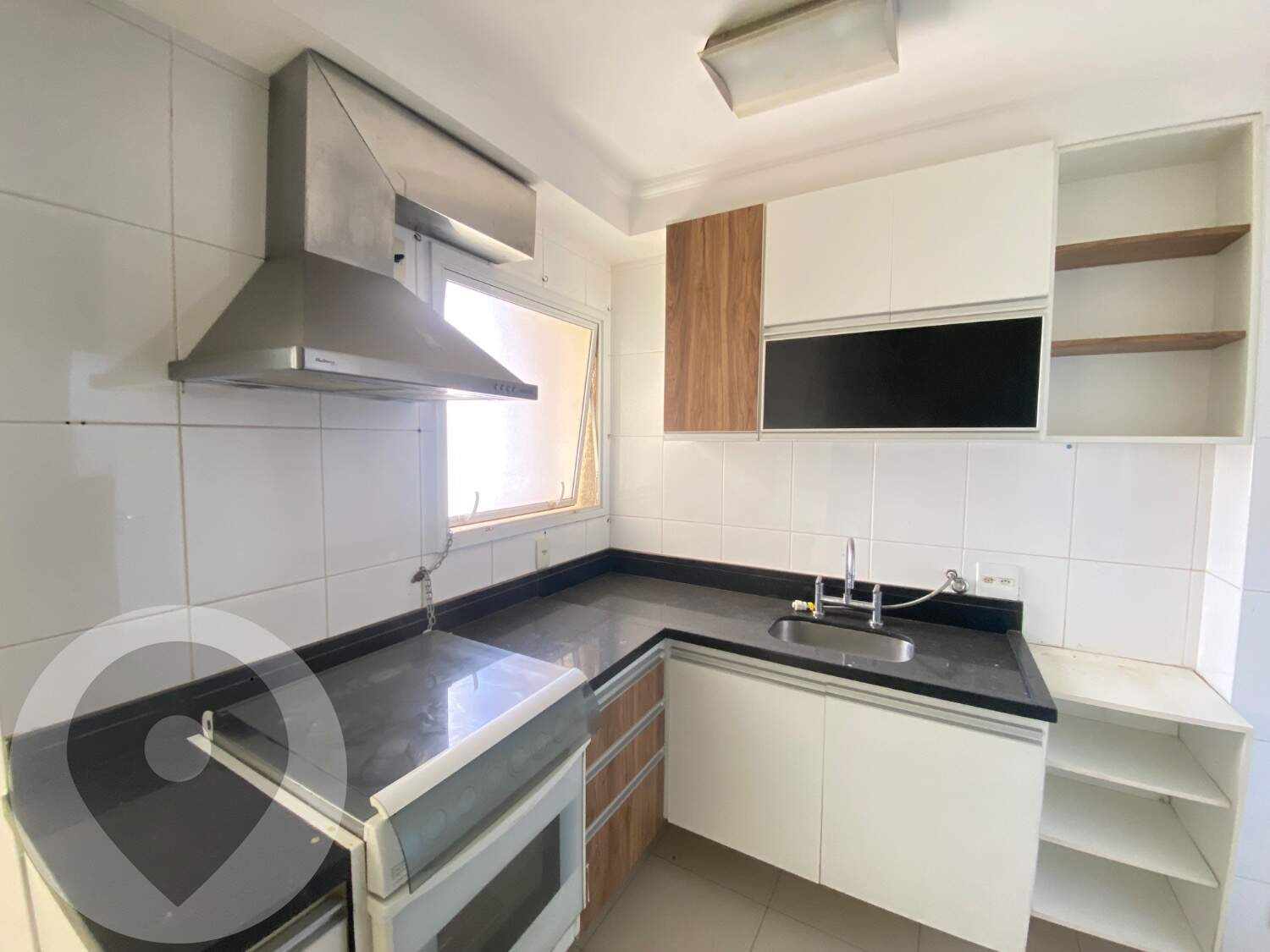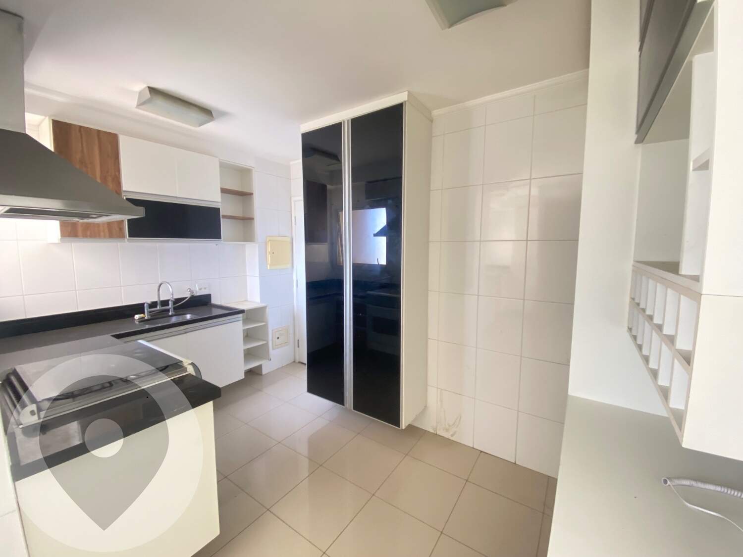 Cozinha planejada e equipada com cooktop e área quente