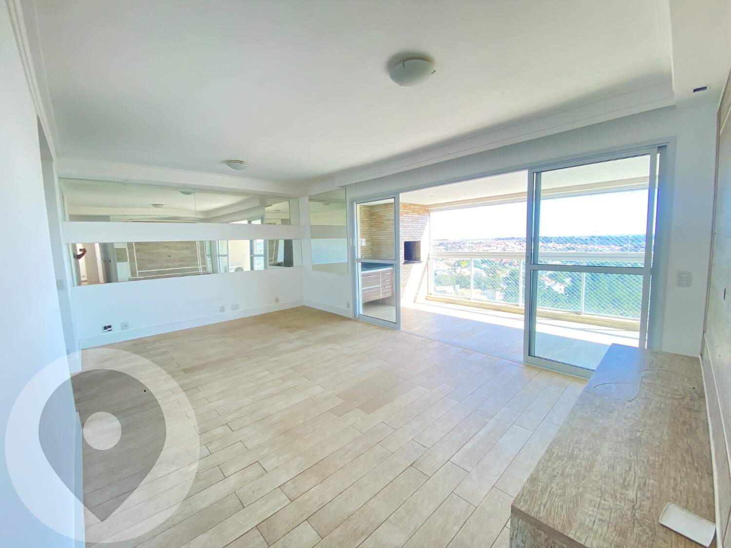 Varanda gourmet integrada à sala e cozinha