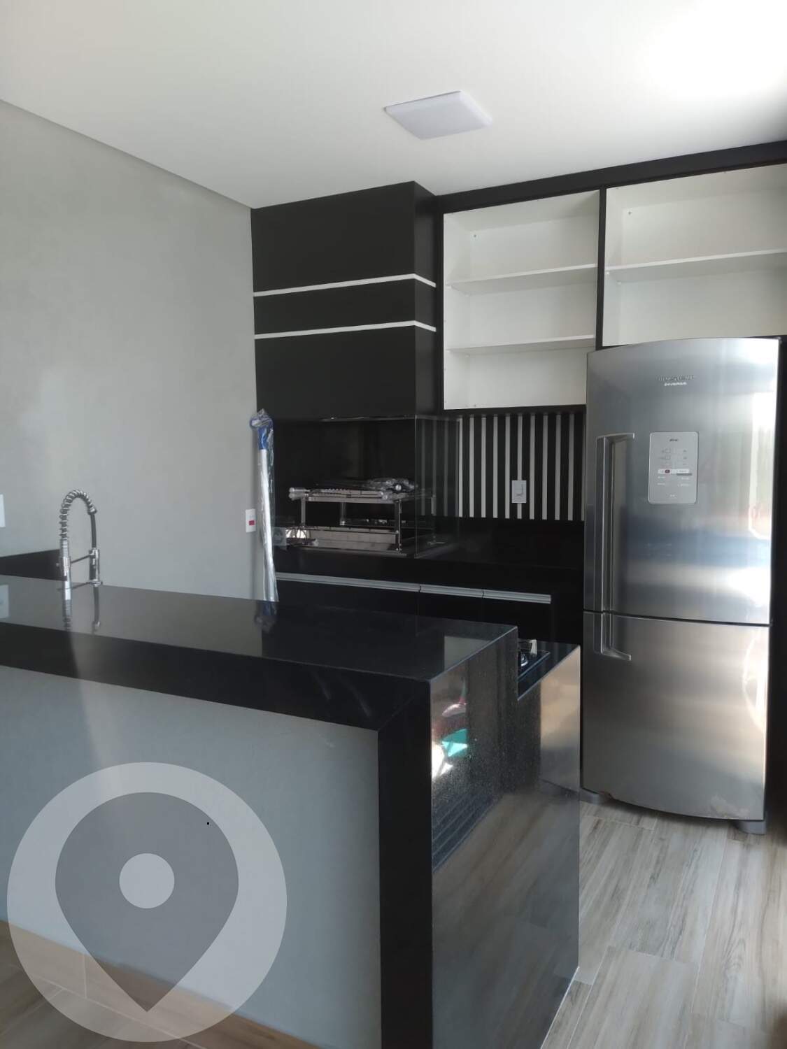 Cozinha funcional com churrasqueira e área de lazer com piscina grande, prainha, hidro e cascata com iluminação LED