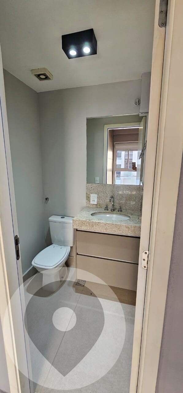 Apartamento moderno de **1 dormitório (suíte)**, em condomínio novo, com **varanda gourmet** e fino acabamento. Possui **lavabo, armários planejados, porcelanato em todos os ambientes** e **decoração contemporânea**.