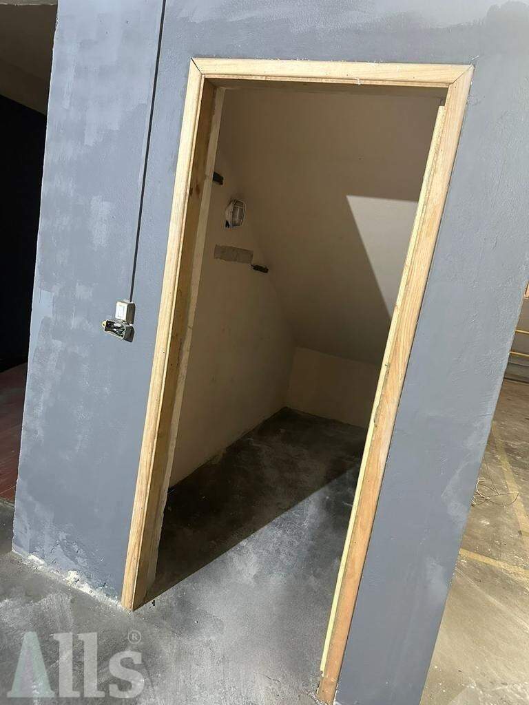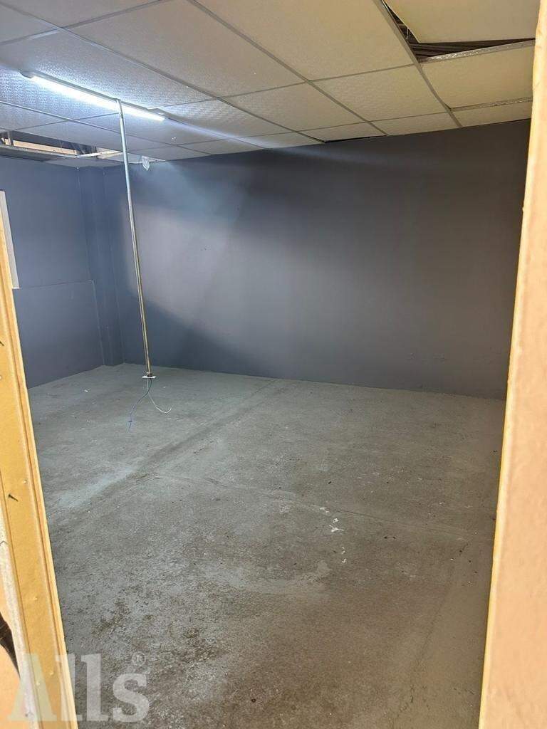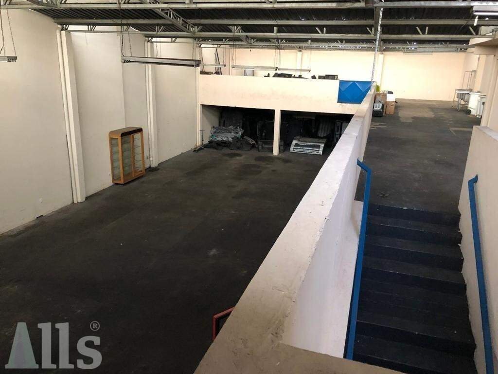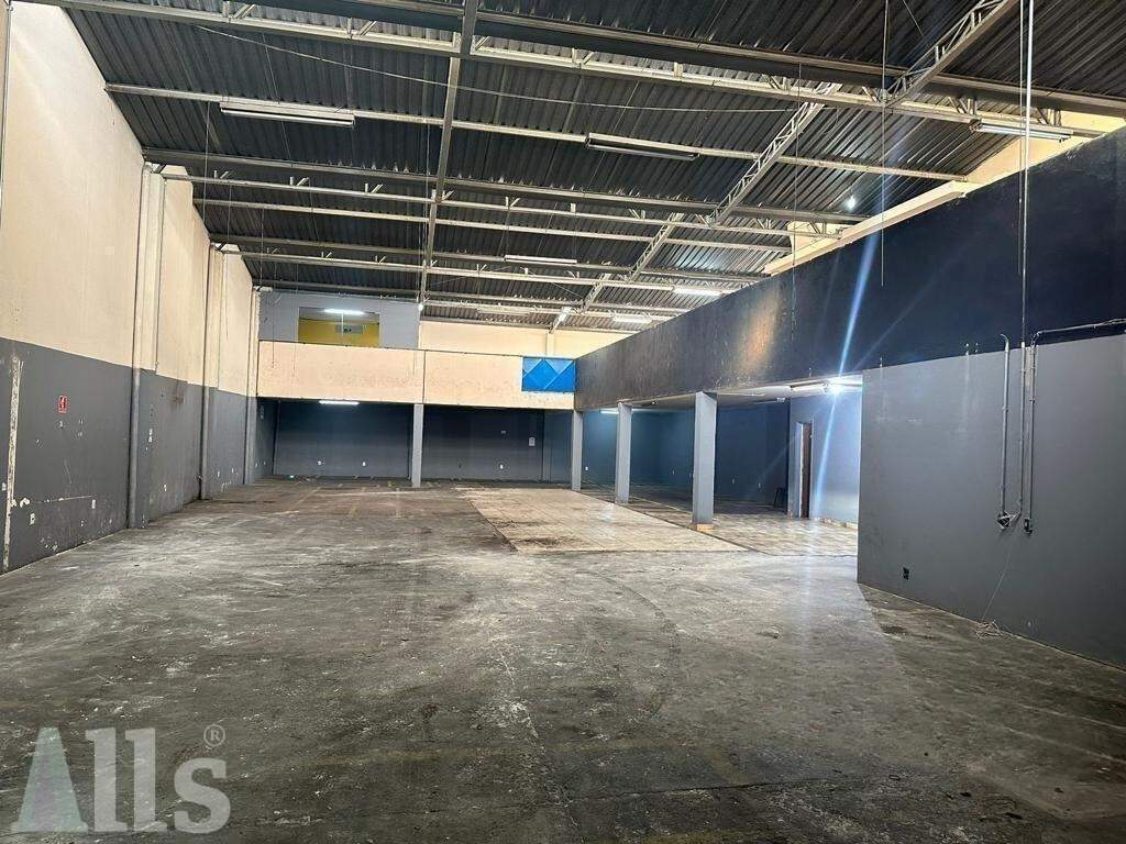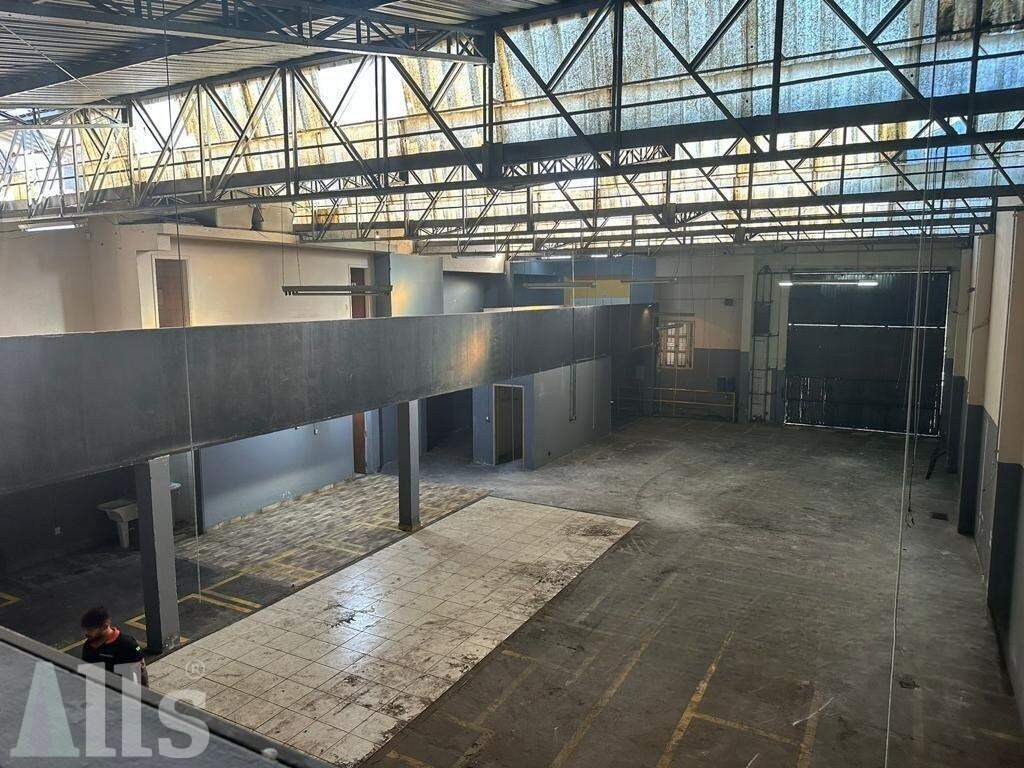Barracão com 660m2 no mezanino. 2 escritórios (um em cada pavimento) e 5 banheiros (2 banheiros na parte debaixo e 3 banheiros na parte de cima).