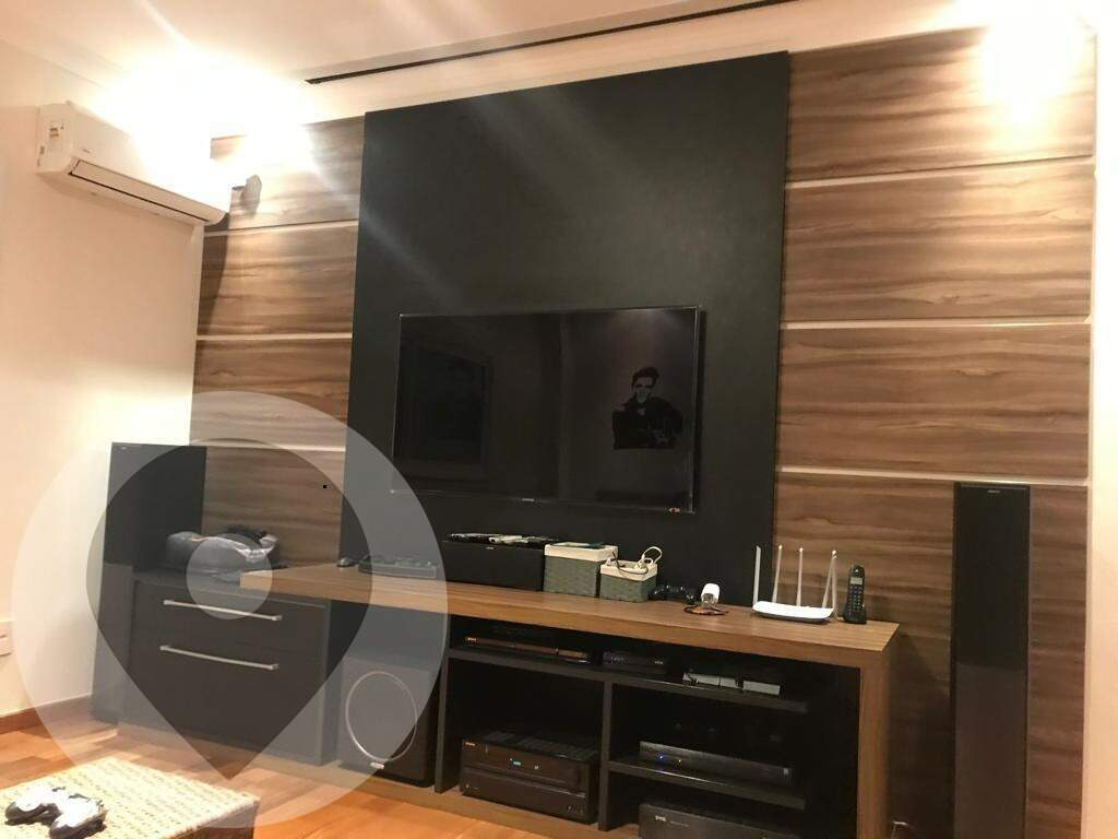 Sala ampla com home theater completo, projetor, telão e sistema de som integrado
