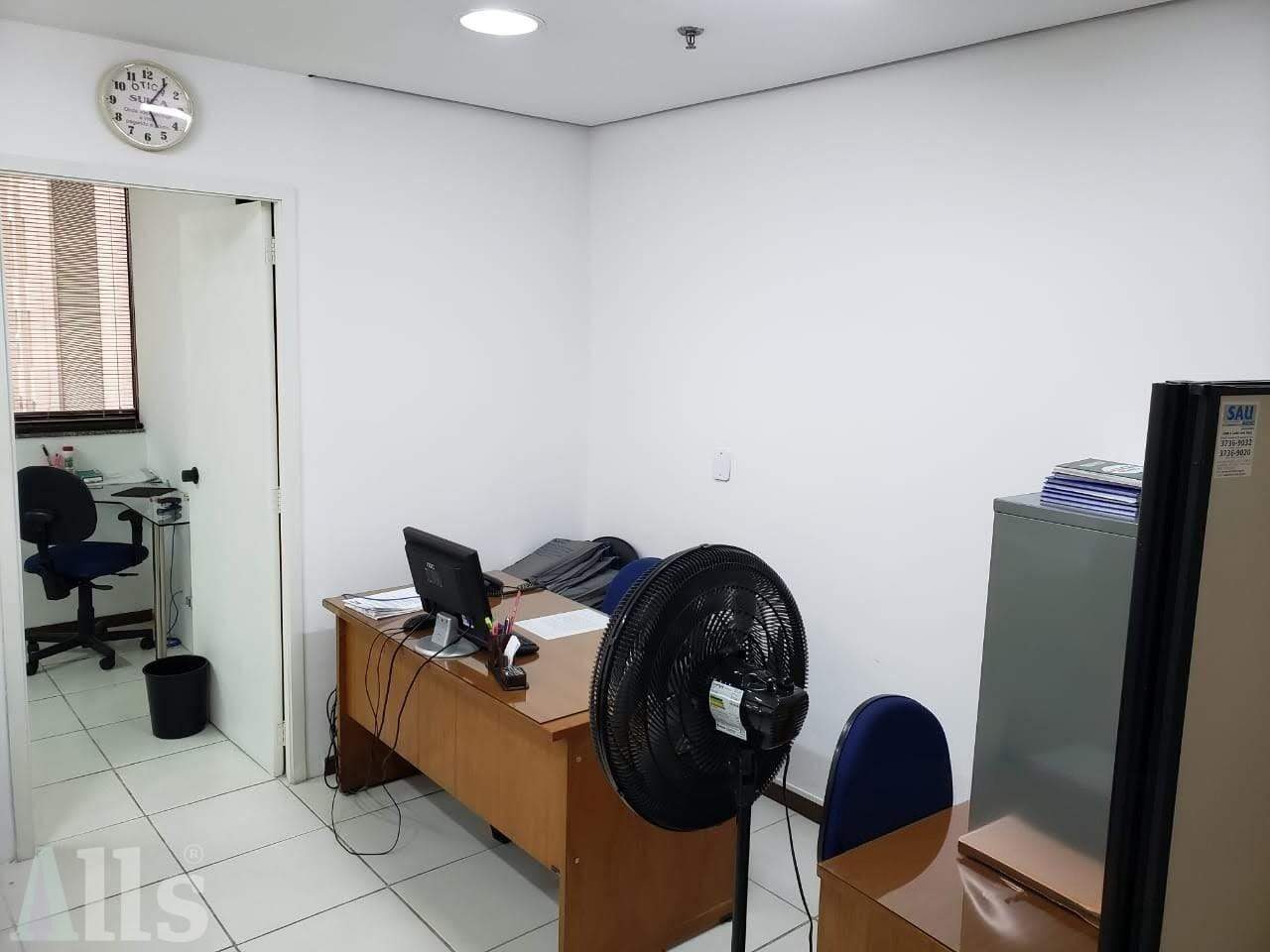 Sala atualmente com 3 ambientes distintos, separados com Drywall, copa, piso em porcelanato, banheiro e ar condicionado.