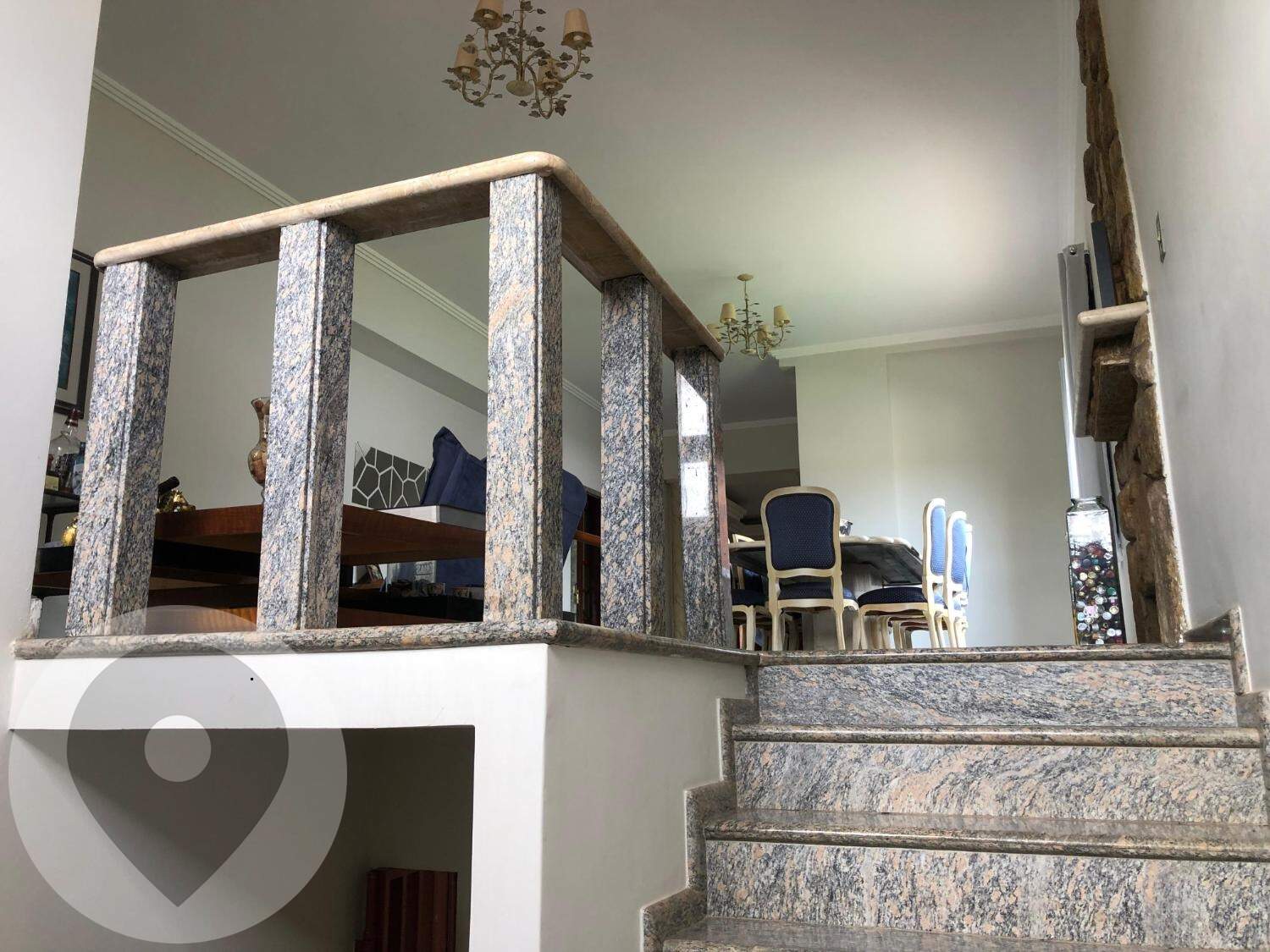 Casa de rua diferenciada, de alto padrão, com disposição residencial ou comercial. Rica em detalhes e muito espaço. Os ambientes sociais contém pavimento todo em granito importado de alta qualidade, 2 livings amplos (25 m² e 45 m²), com lareira e lavabo. 8 dormitórios no total. Sendo, piso superior 2 quartos, ambos com closet, servido com um banheiro e lavabo entre os 2 quartos (suíte americana), 1 suite, um dormitório reversível, e a incrível suíte master, muitíssimo ampla, com varanda. No piso intermédio ao lado da cozinha uma suíte / sala de tv, no piso inferior, uma suíte e a suíte da empregada. Cozinha panejada, despensa, copa, área de serviço, lavanderia, amplo salão de festas, salão fitness, sauna e adega. Piscina de 32 m² com hidro, iluminação, cascata e churrasqueira. Garagem para 8 carros, 4 cobertos.