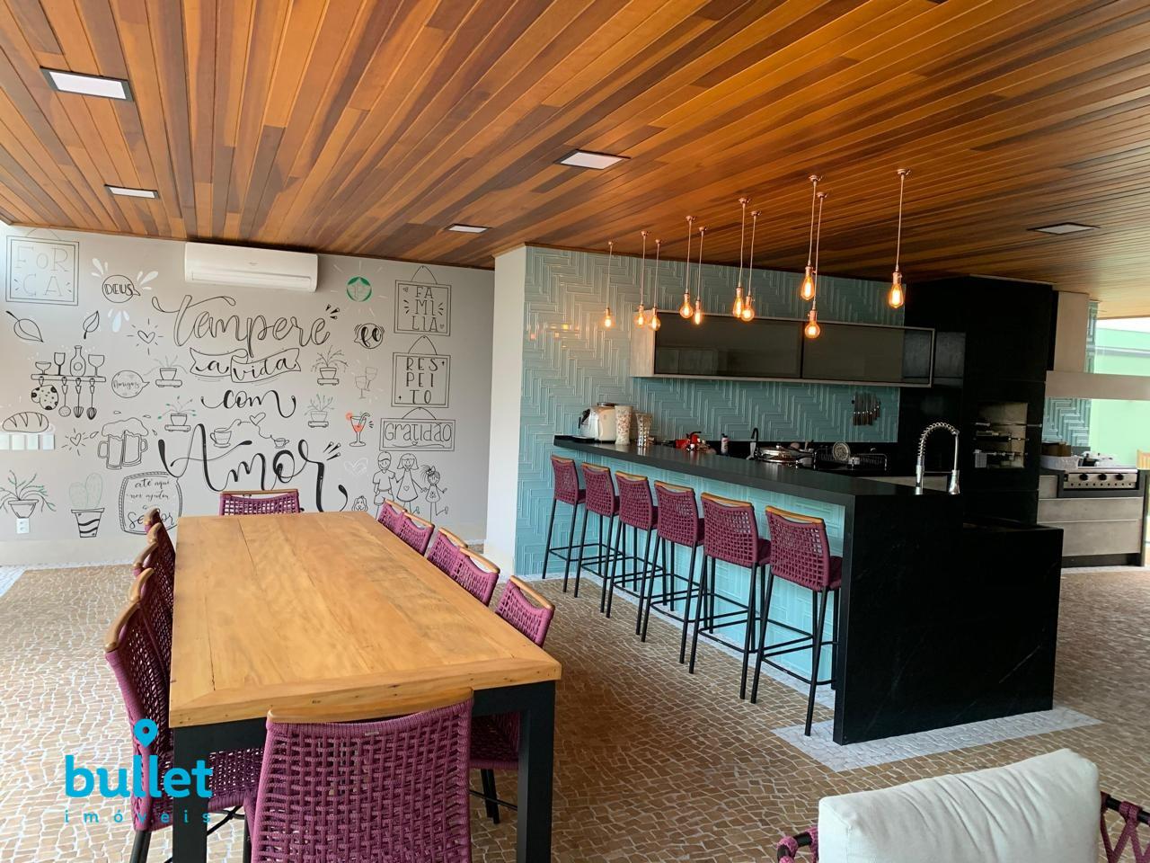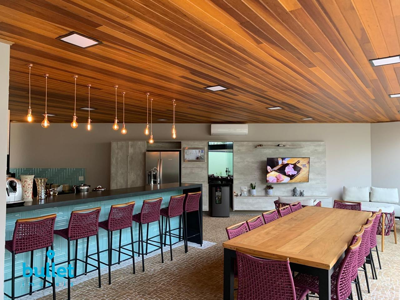 Com mais de 100m², este ambiente é o coração da casa, equipado com churrasqueira, fogão a lenha e chapa para lanches. O espaço perfeito para receber amigos e familiares com todo o conforto.